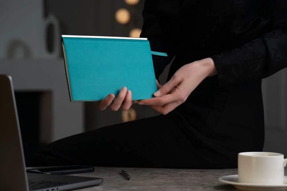 Ежедневник с гибкой обложкой, выполнен из материала Waltz, дополнен металлическим хромированным корешком. Корешек оклеен бирюзовой пленкой для защиты от царапин, снимите ее перед использованием.