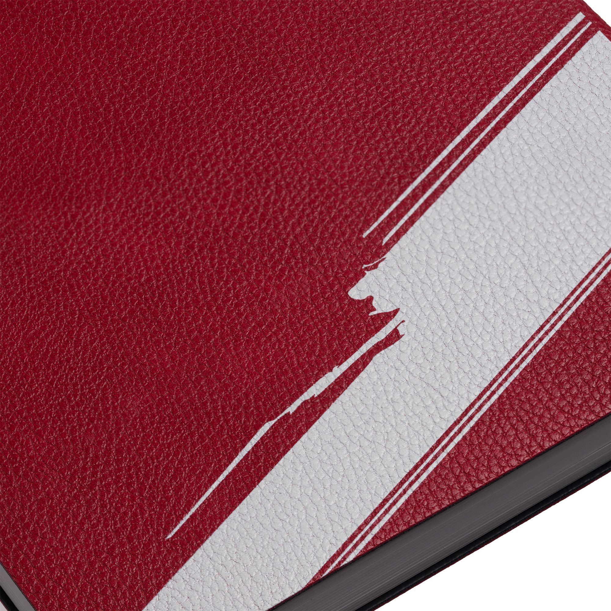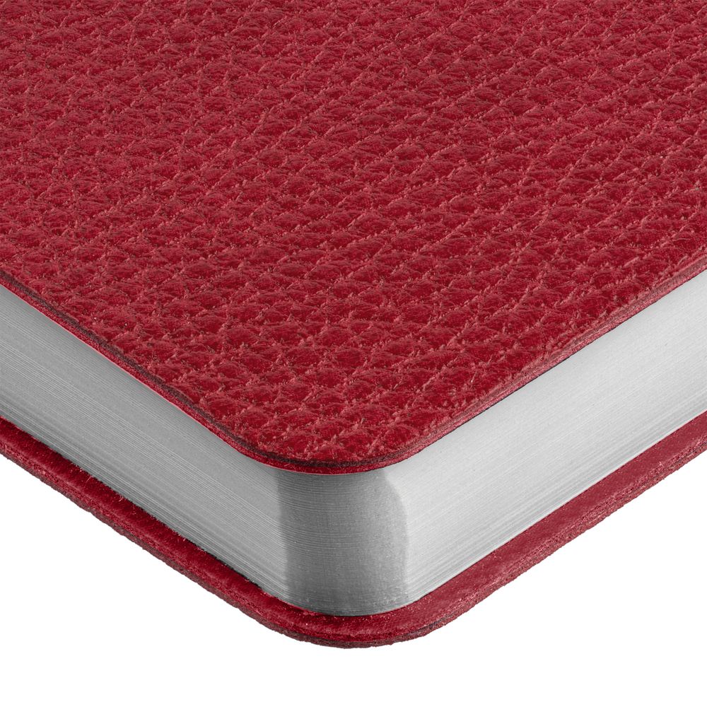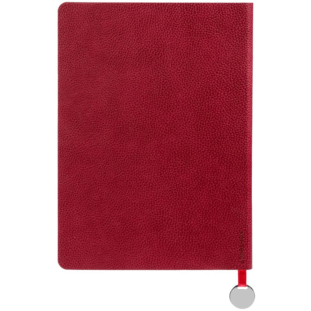 Ежедневник с гибкой обложкой, выполнен из материал La Fite, красный РР, дополнен ляссе в цвет обложки с металлическим шильдом.