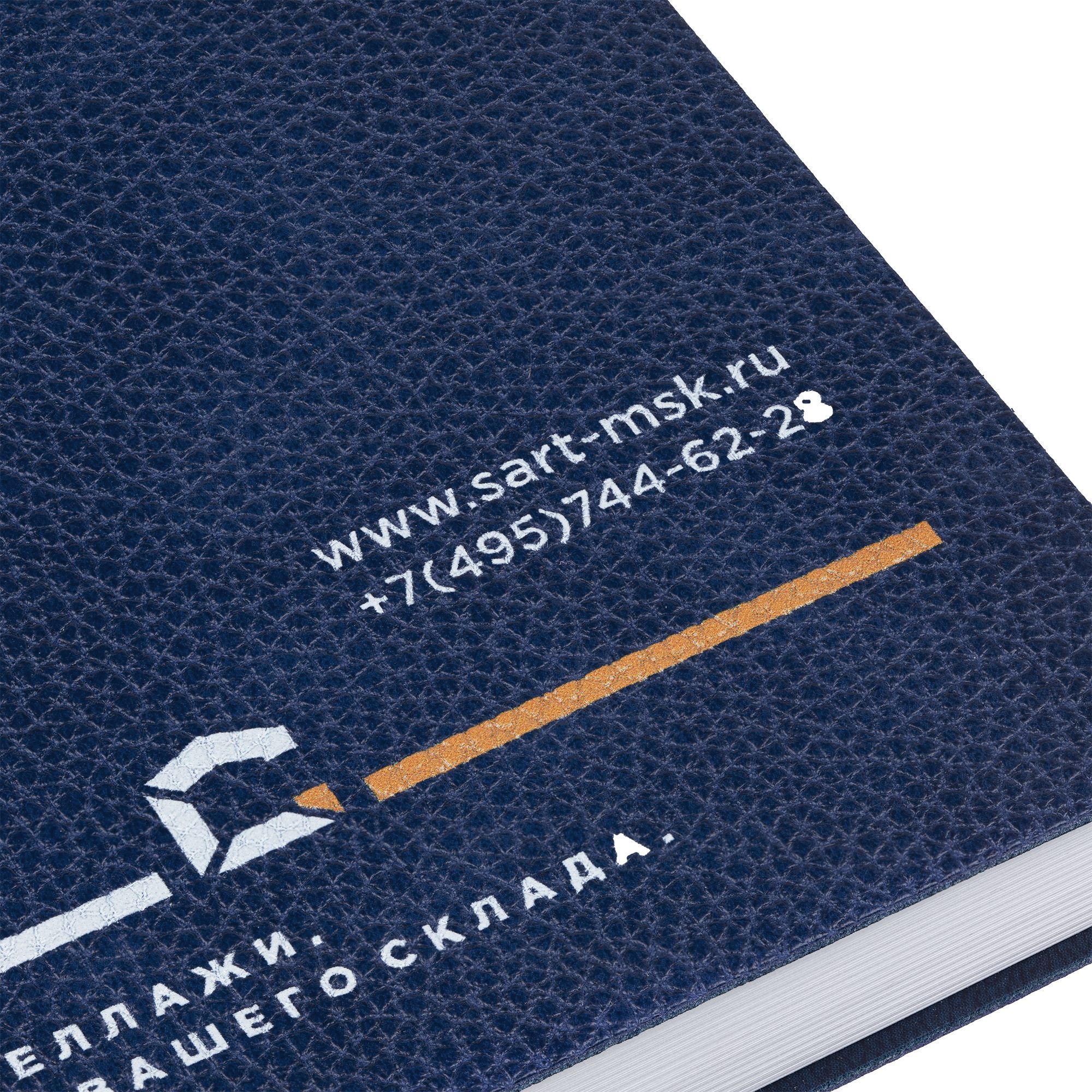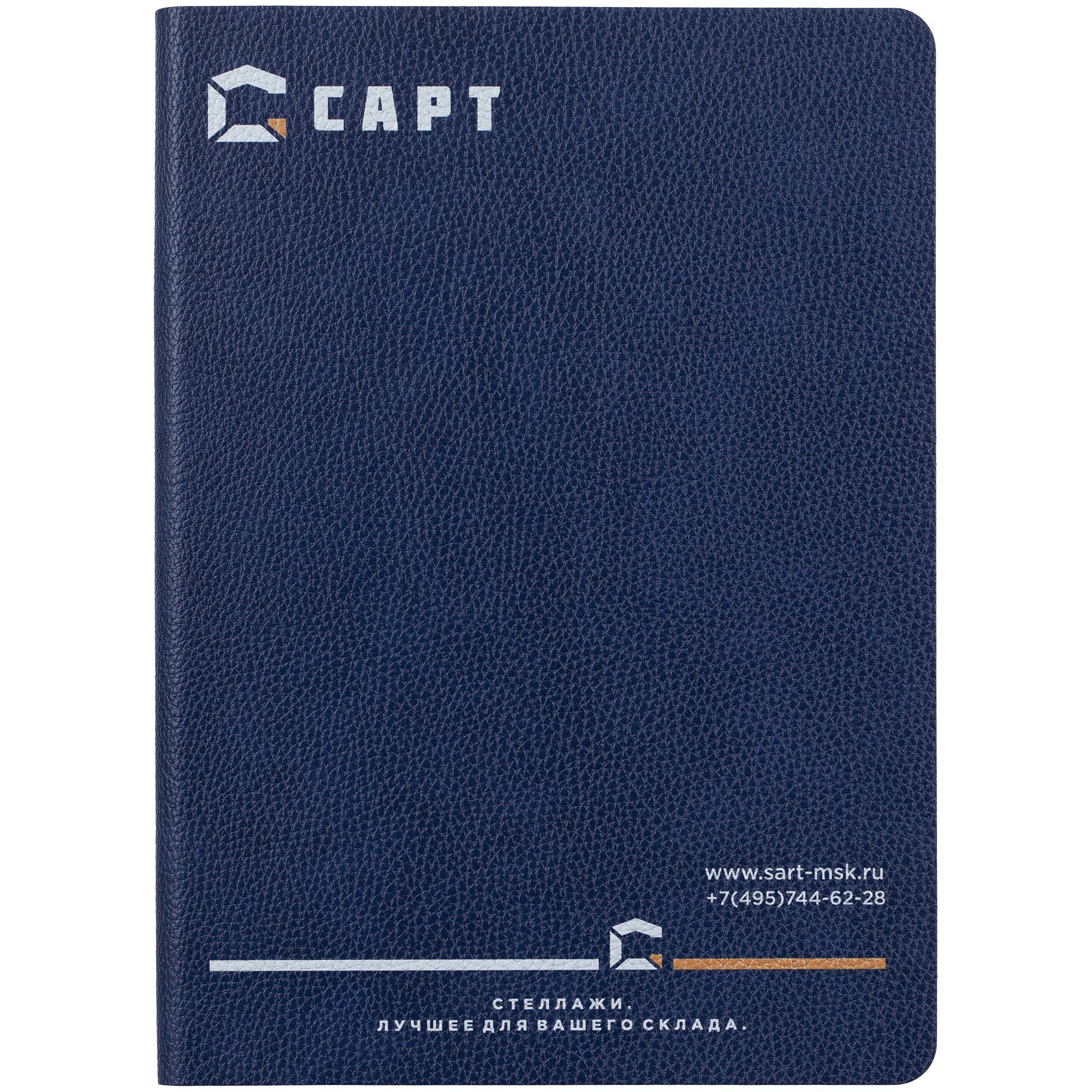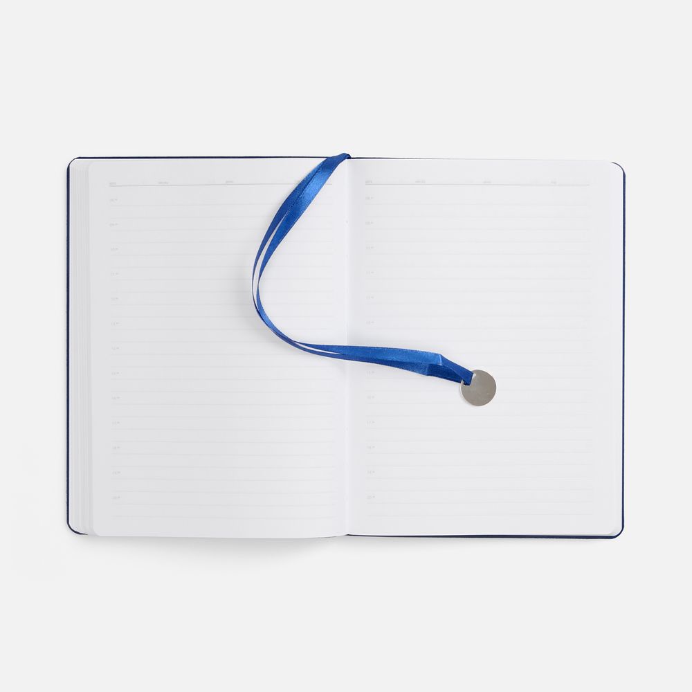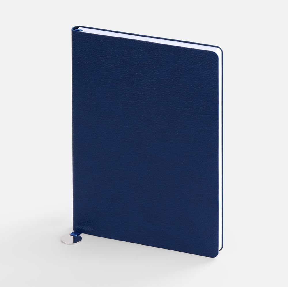 Ежедневник с гибкой обложкой, выполнен из материал La Fite, синий НН, дополнен ляссе в цвет обложки с металлическим шильдом.