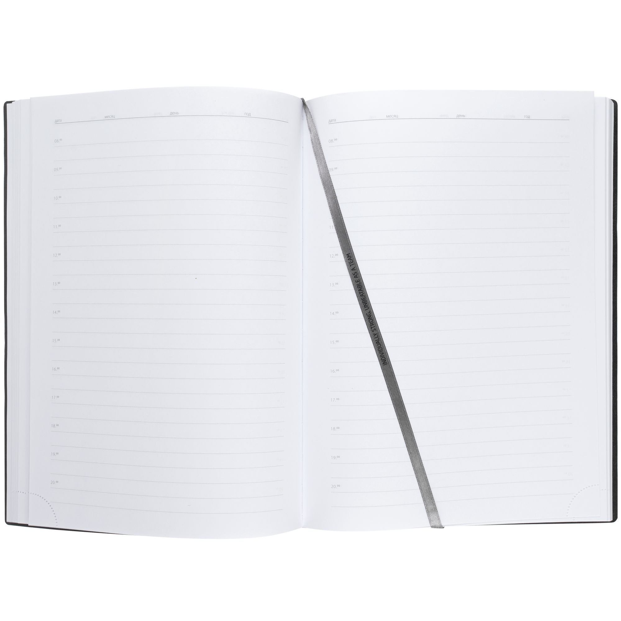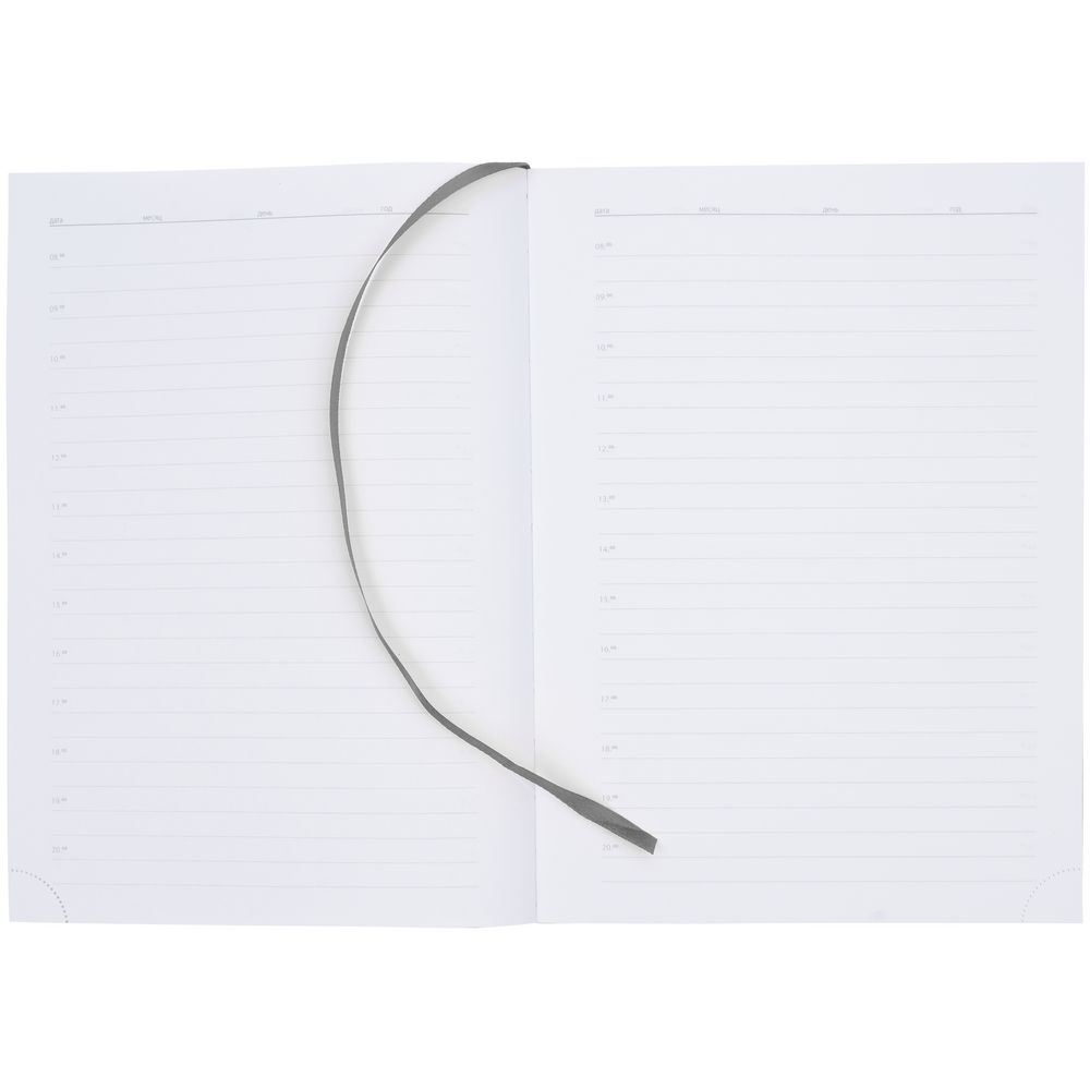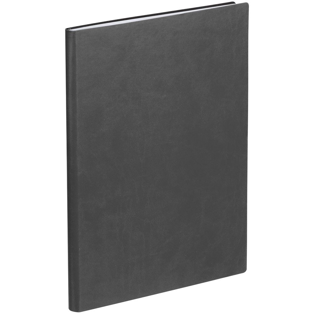 Ежедневник в гибкой обложке выполнен из материала Latte, темно-серый.