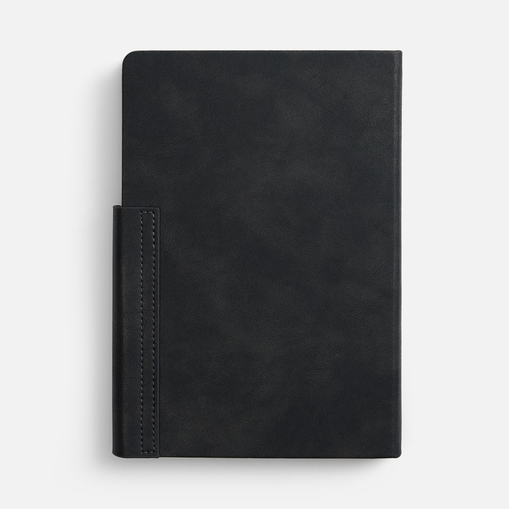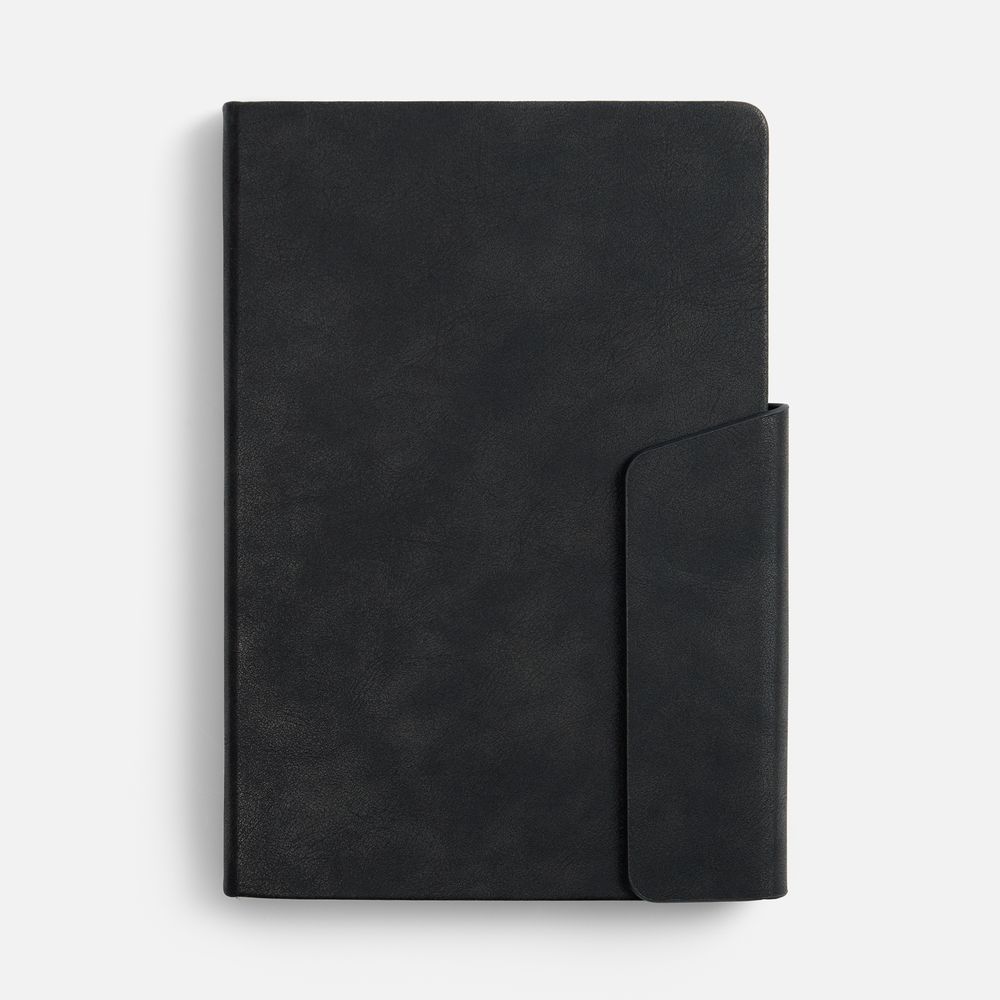 Ежедневник с твердой обложкой и фигурным магнитным клапаном, дополнен капталом и двойным ляссе.