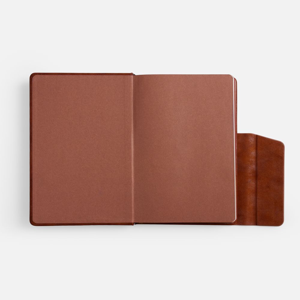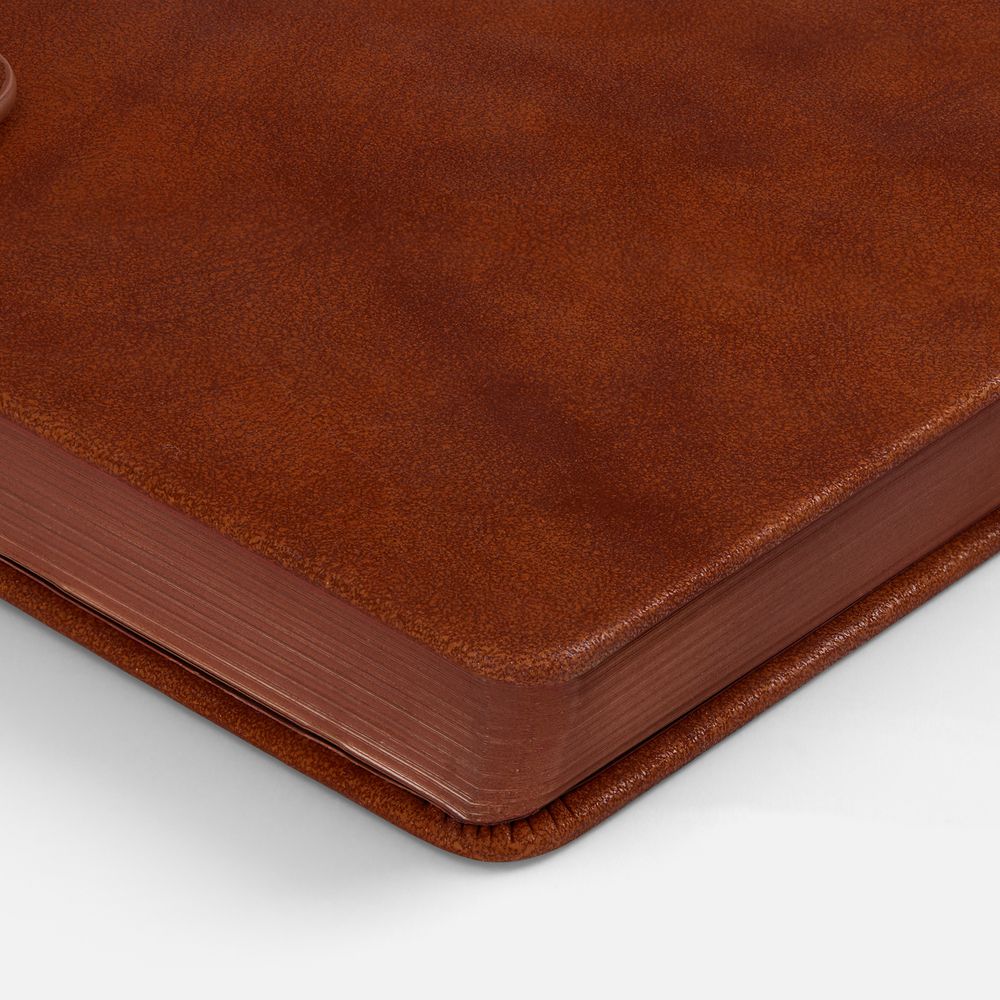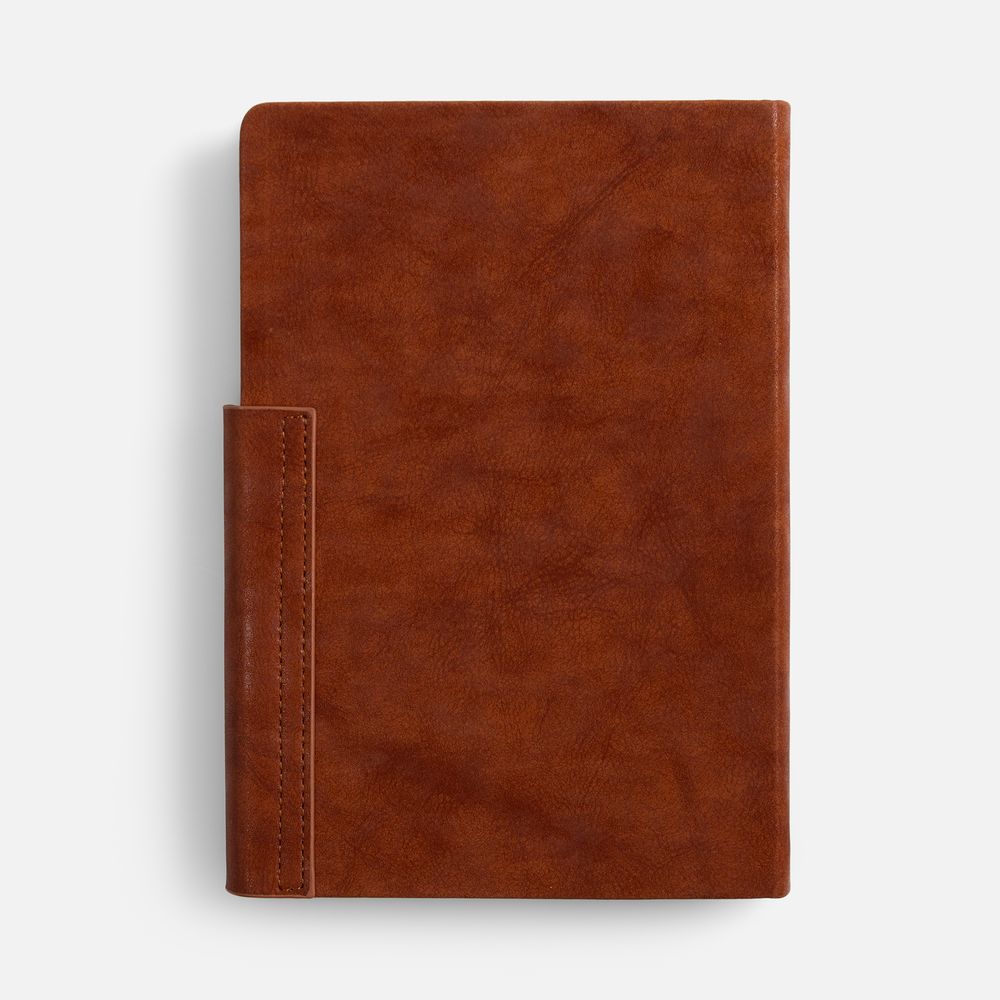 Ежедневник с твердой обложкой и фигурным магнитным клапаном, дополнен капталом и двойным ляссе.