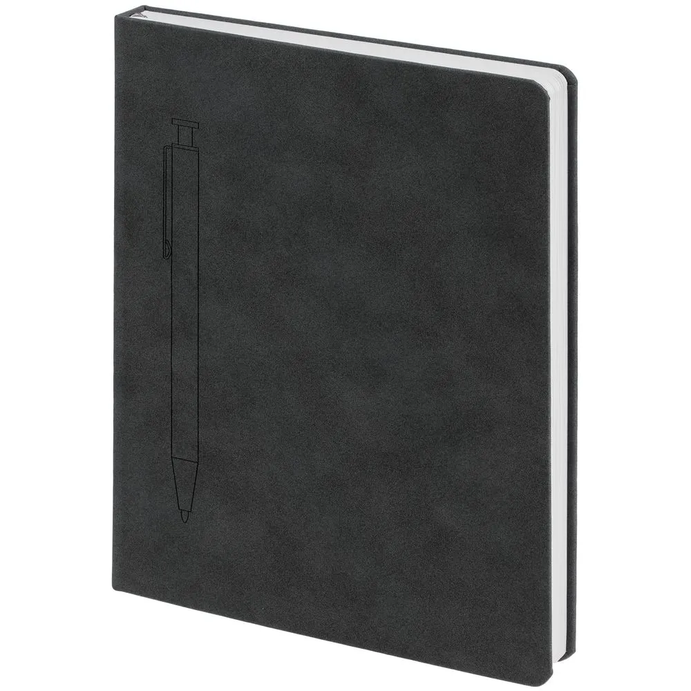 Ежедневник в твердой обложке выполненной из материала Nubuck, черный, дополнен цветным ляссе и магнитом, удерживающим ручку.