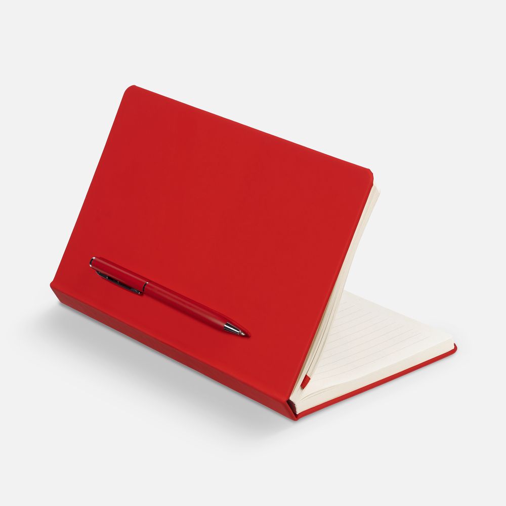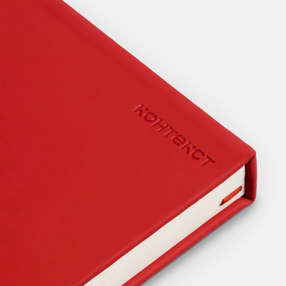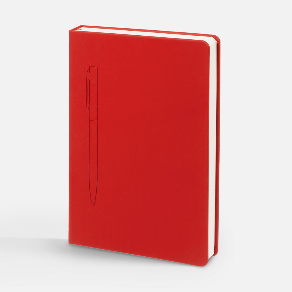 Ежедневник в твердой обложке, выполненной из материала Soft Touch Ultra, красный РР, дополнен цветным ляссе и магнитом, удерживающим ручку.