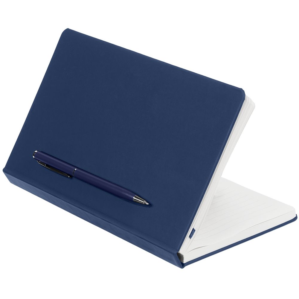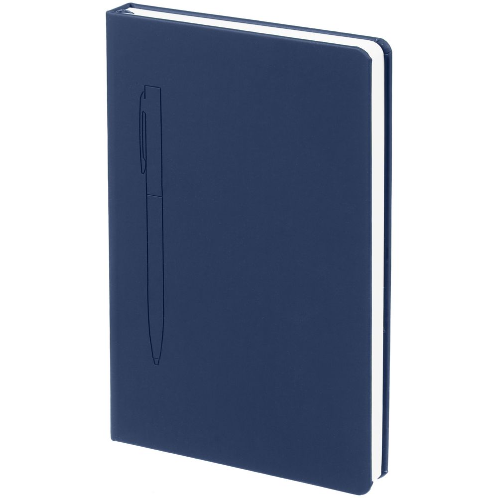 Ежедневник в твердой обложке, выполненной из материала Soft Touch Pearl, синий НН, дополнен цветным ляссе и магнитом, удерживающим ручку.