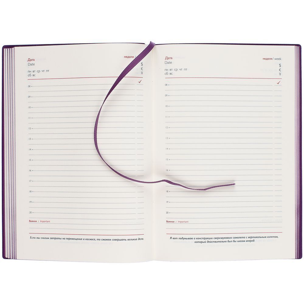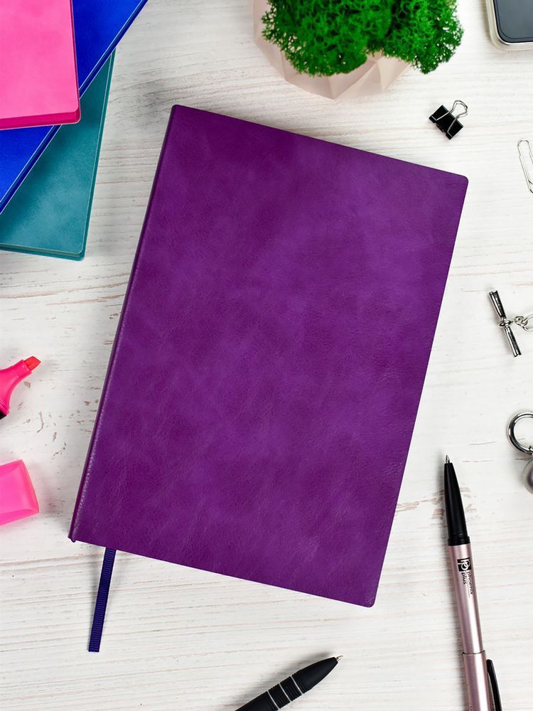 Ежедневник с гибкой обложкой из искусственной кожи Vacheto, дополнен капталом и ляссе в цвет ежедневника.