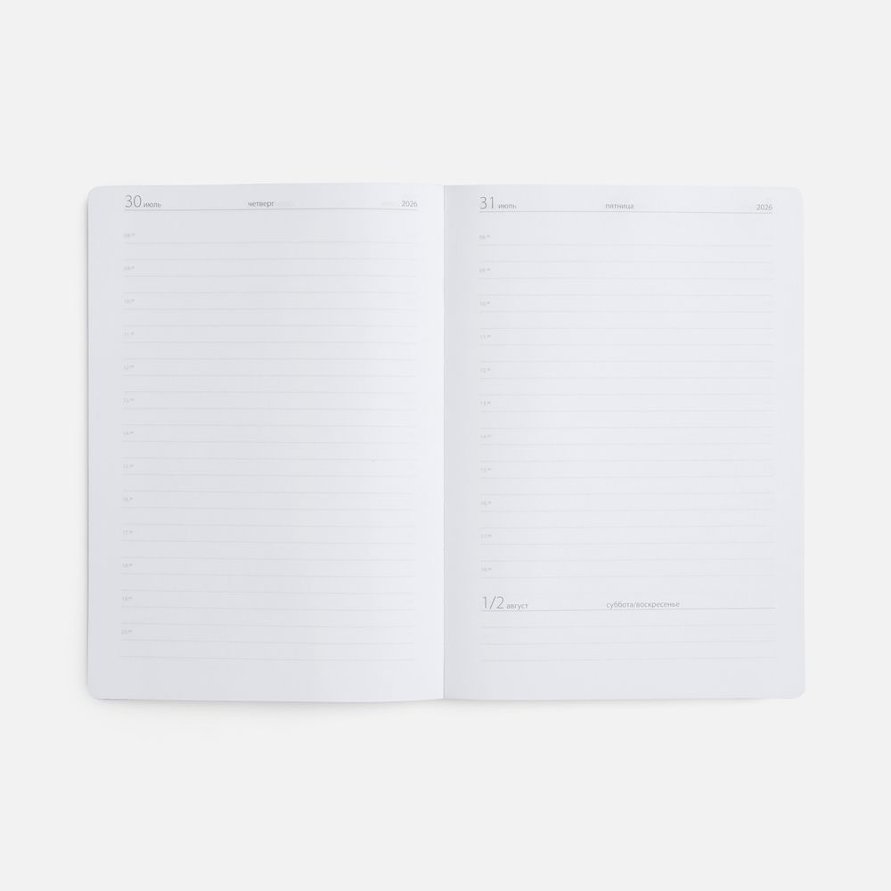 Ежедневник с твердой обложкой выполнен из материала Nice Touch, фиолетовый UU, и дополнен резинкой шириной 1 см и ляссе сиреневого цвета.