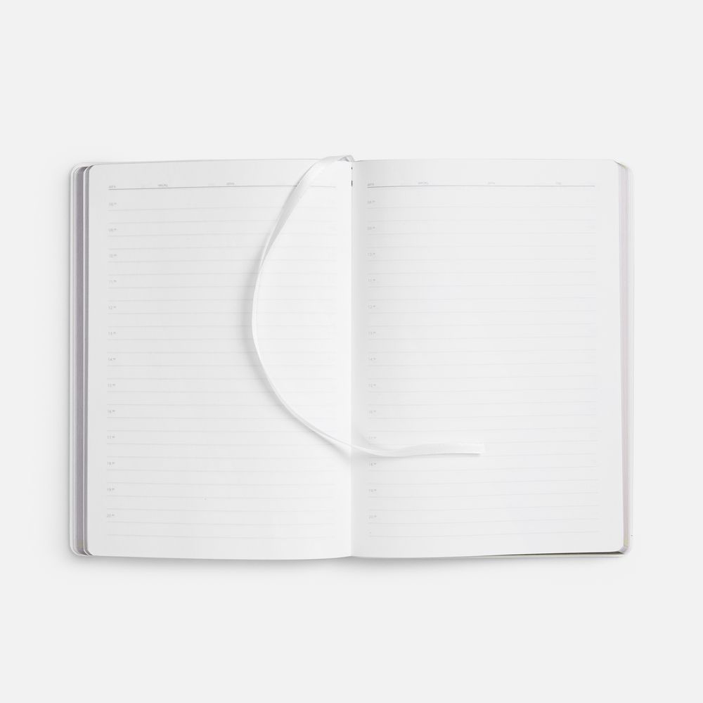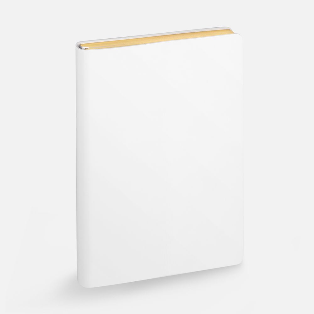 Ежедневник с гибкой обложкой, выполнен из материала Nebraska, белый BB (внутри и снаружи), дополнен ляссе белого цвета.