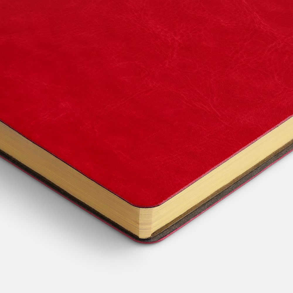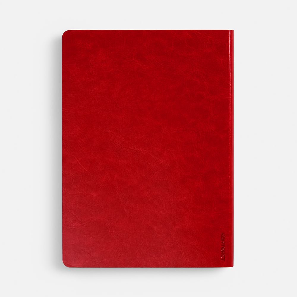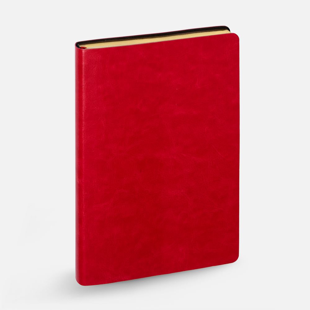 Ежедневник с гибкой обложкой, выполнен из материала Nebraska, красный PP, дополнен ляссе красного цвета.