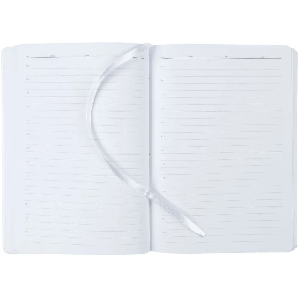 Ежедневник с твердой обложкой, выполнен из материала Winner, белый ВВ, дополнен ляссе в цвет обложки.