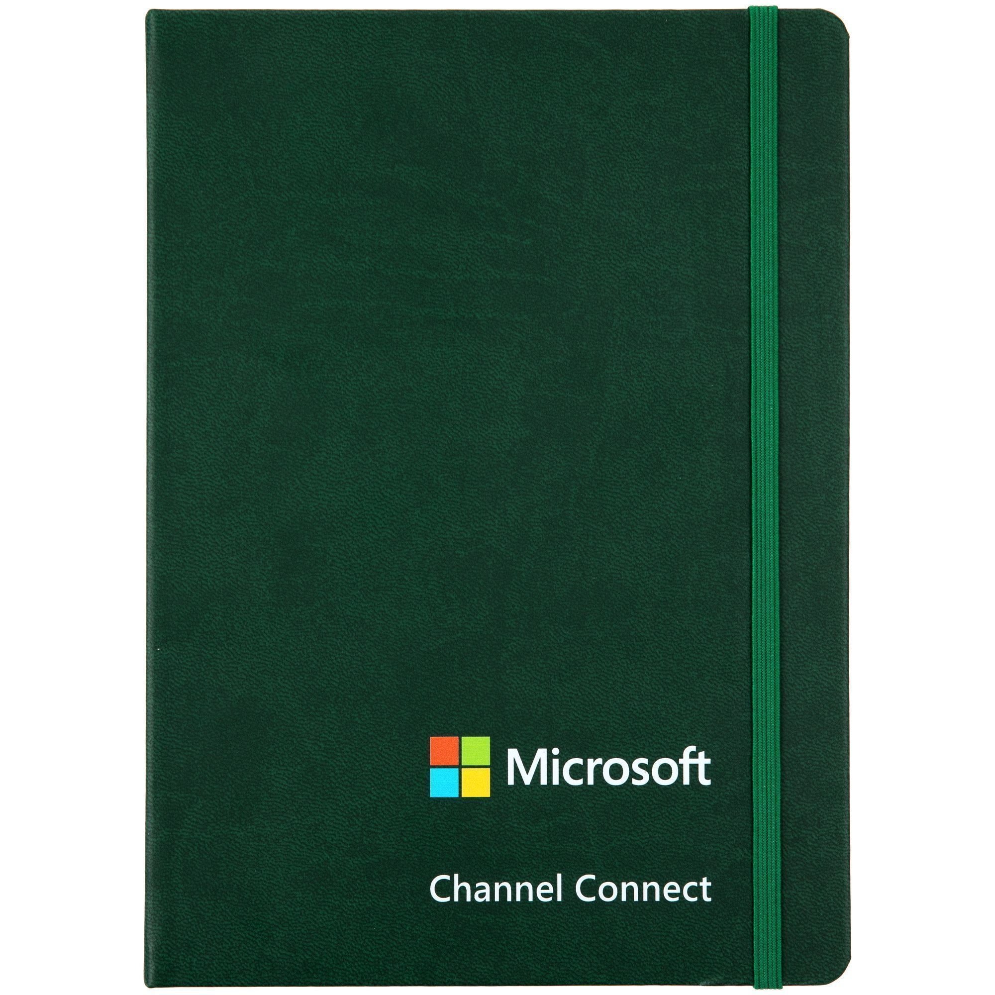Ежедневник с твердой обложкой, выполнен из материала Latte, зеленый FF, обрез зеленого цвета, дополнен резинкой и ляссе зеленого цвета.