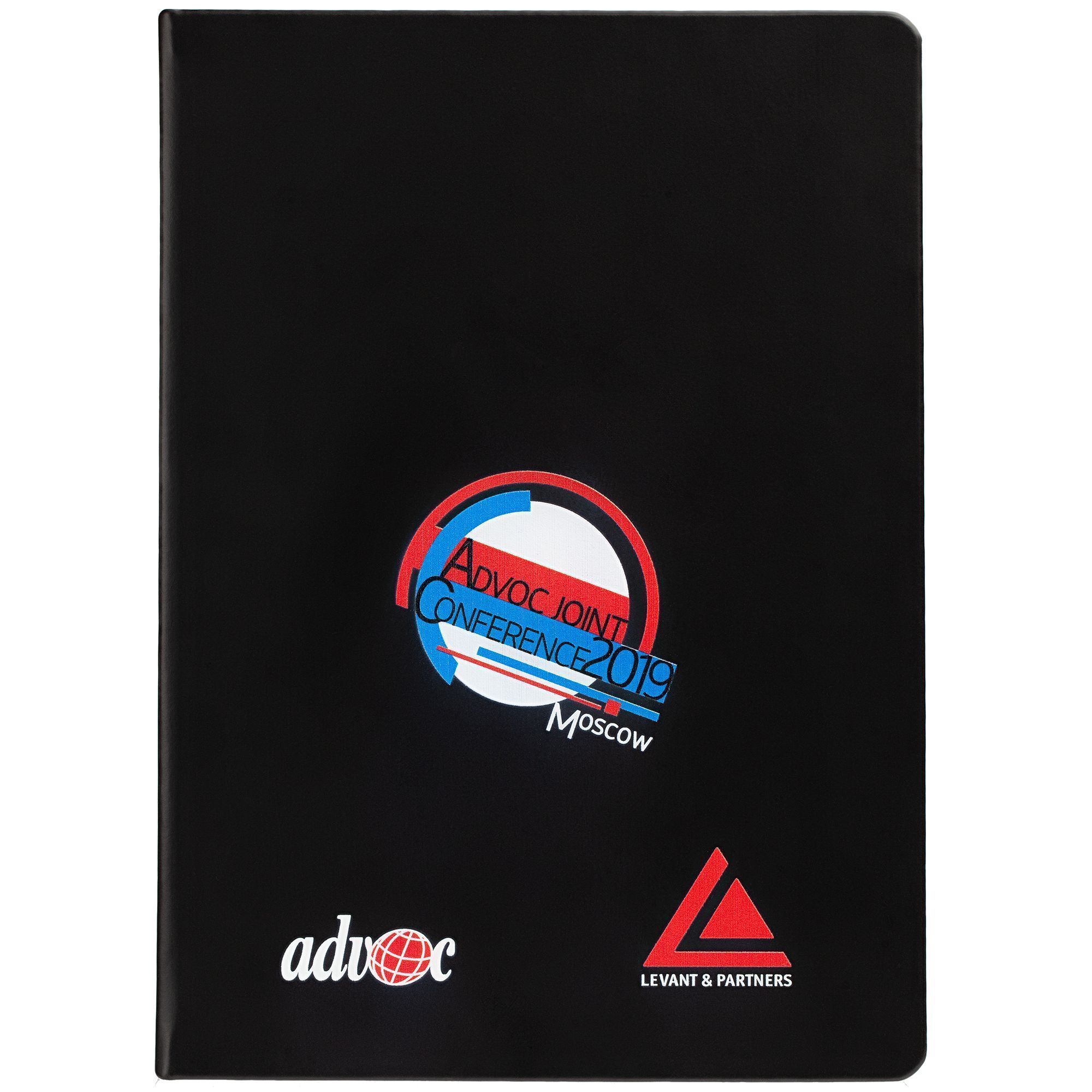 Ежедневник с твердой обложкой. Выполнен из материала Latte, черный, дополнен ляссе в цвет обложки.