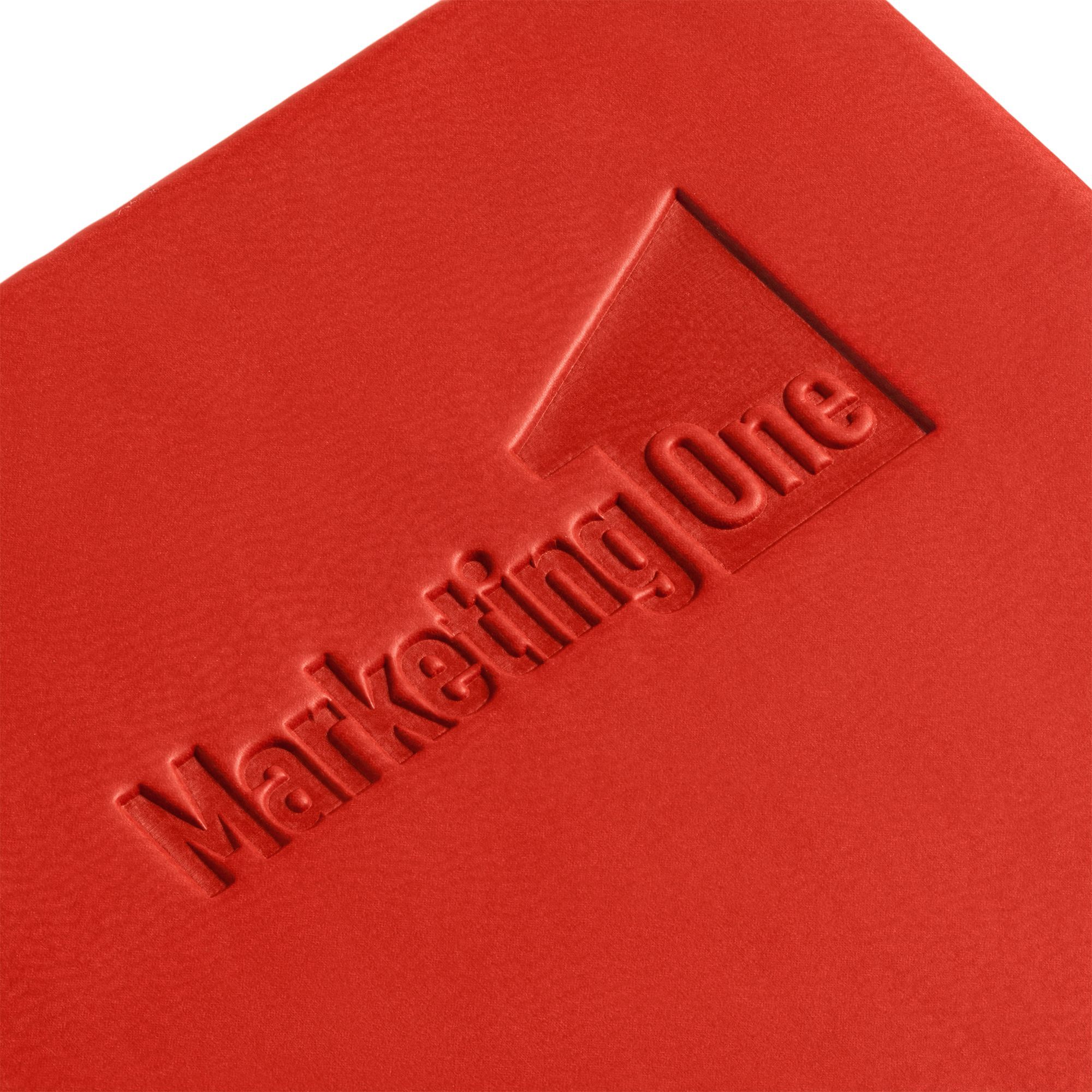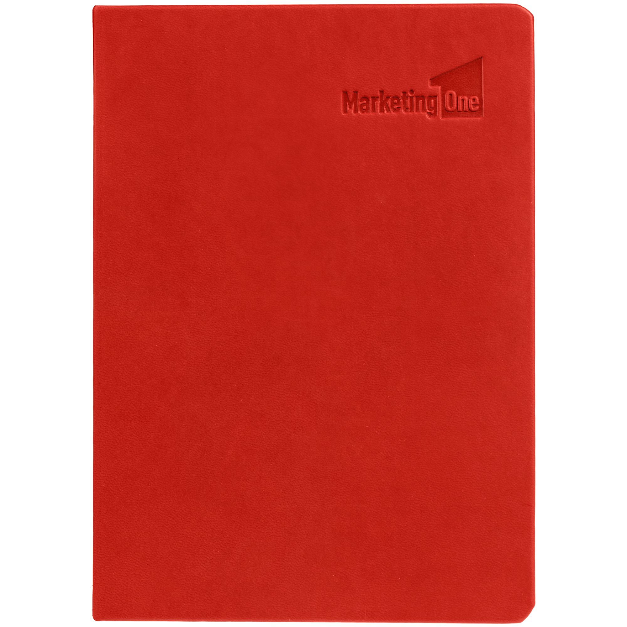 Ежедневник с твердой обложкой. Выполнен из материала Latte, красный, дополнен ляссе в цвет обложки.