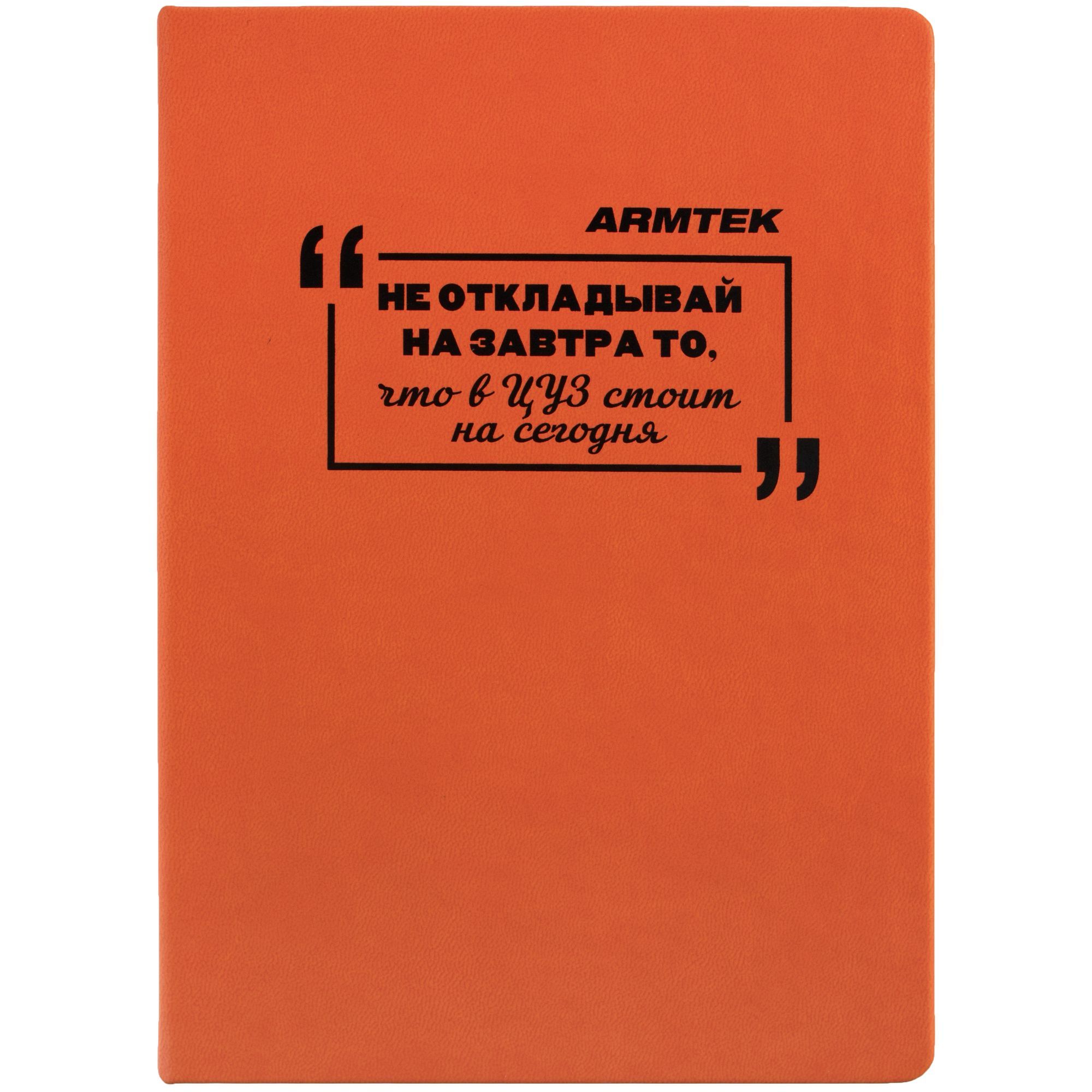Ежедневник с твердой обложкой. Выполнен из материала Latte, оранжевый, дополнен ляссе в цвет обложки.