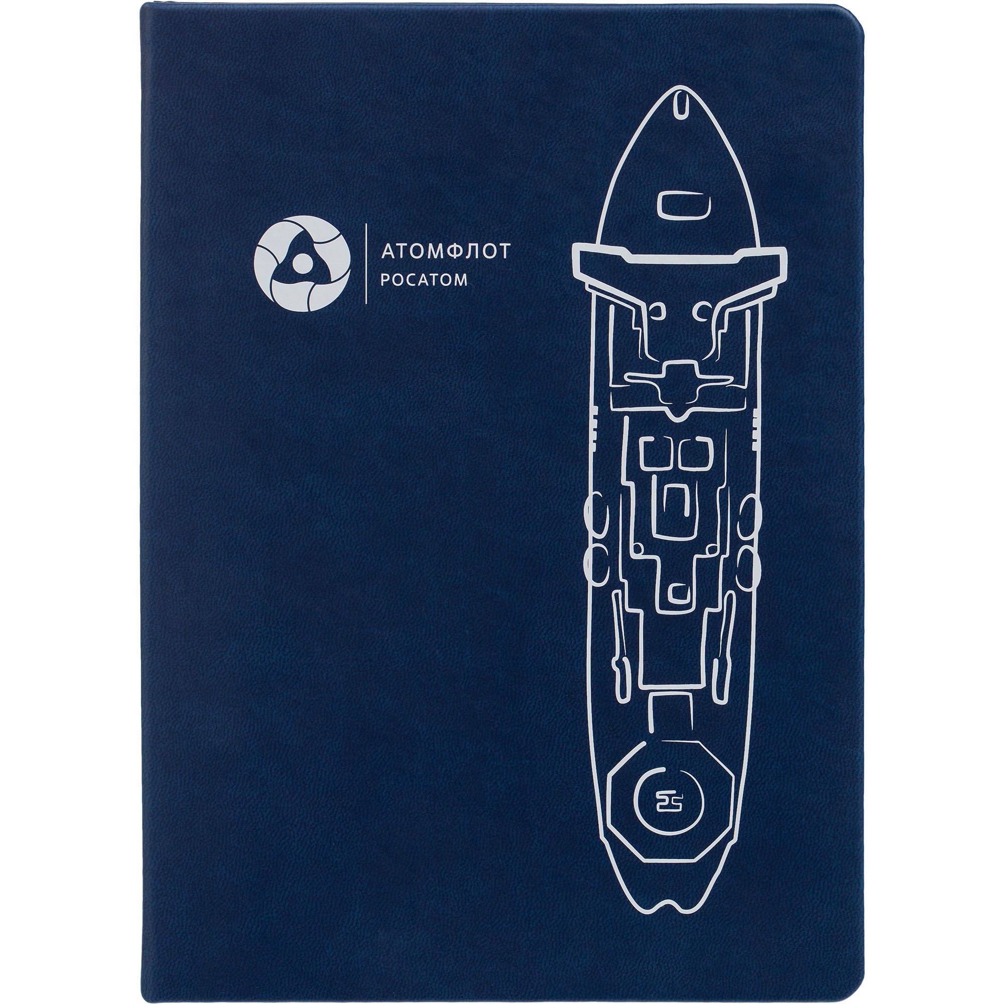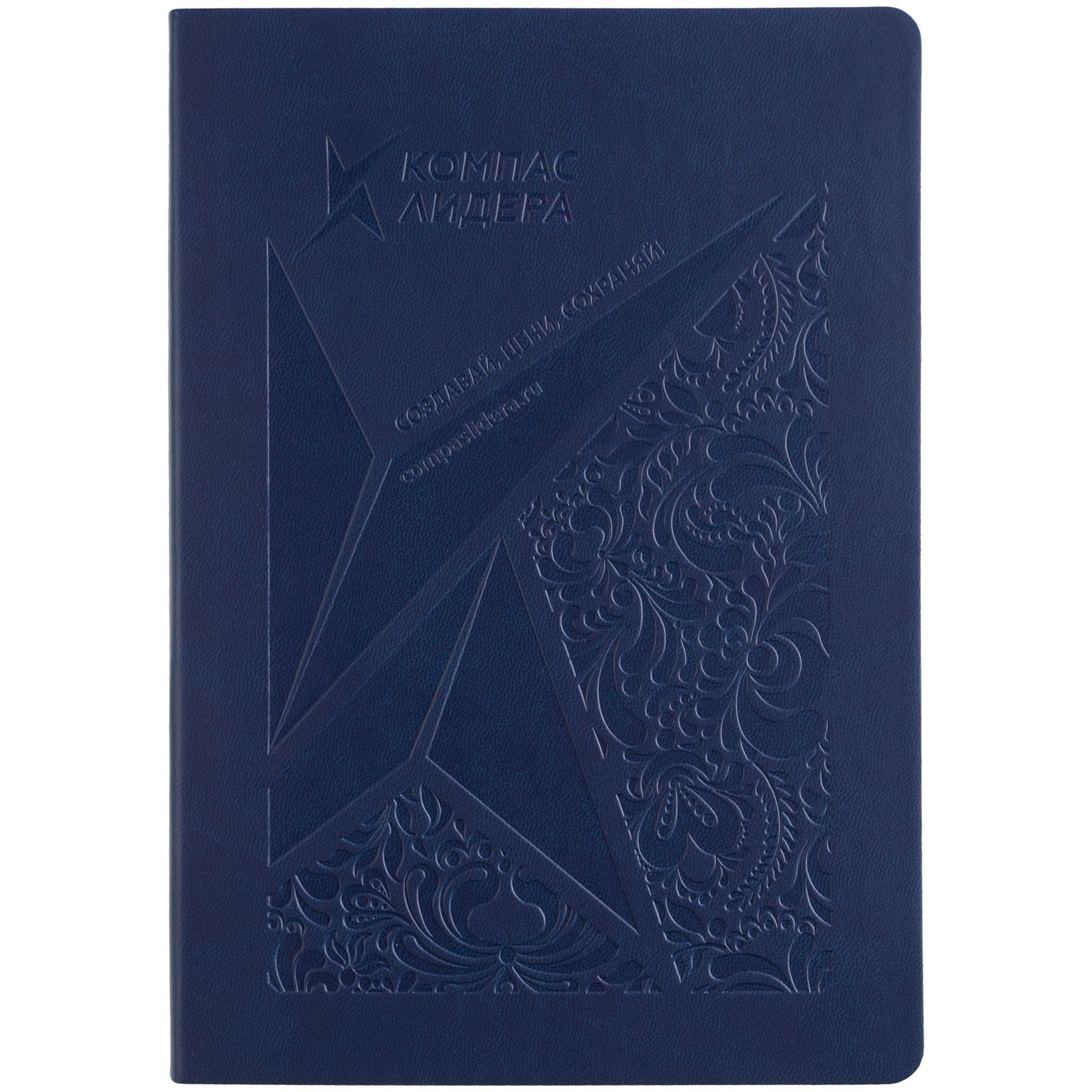 Ежедневник с твердой обложкой. Выполнен из материала Latte, темно-синий, дополнен ляссе в цвет обложки.