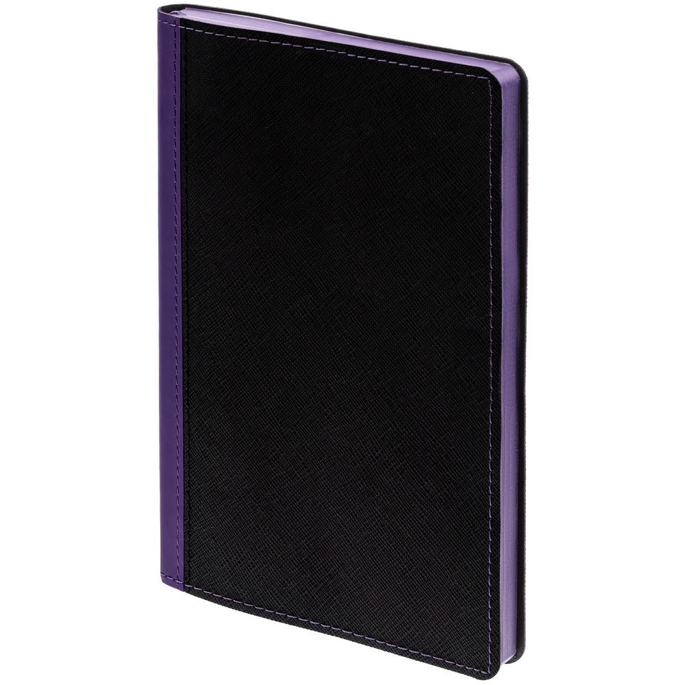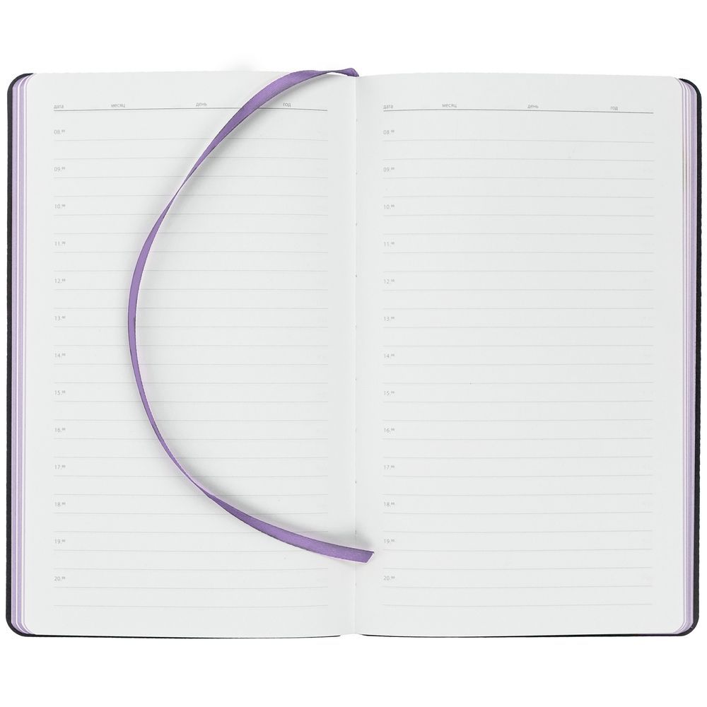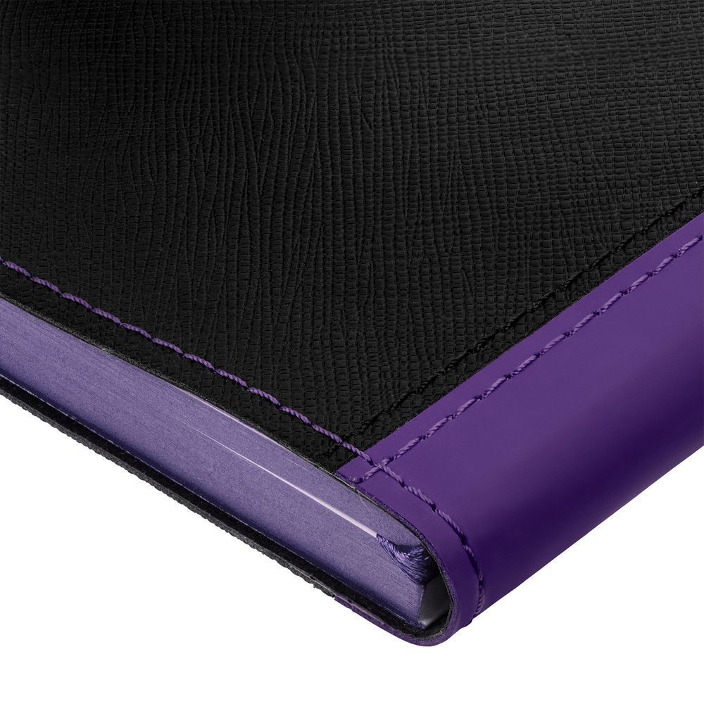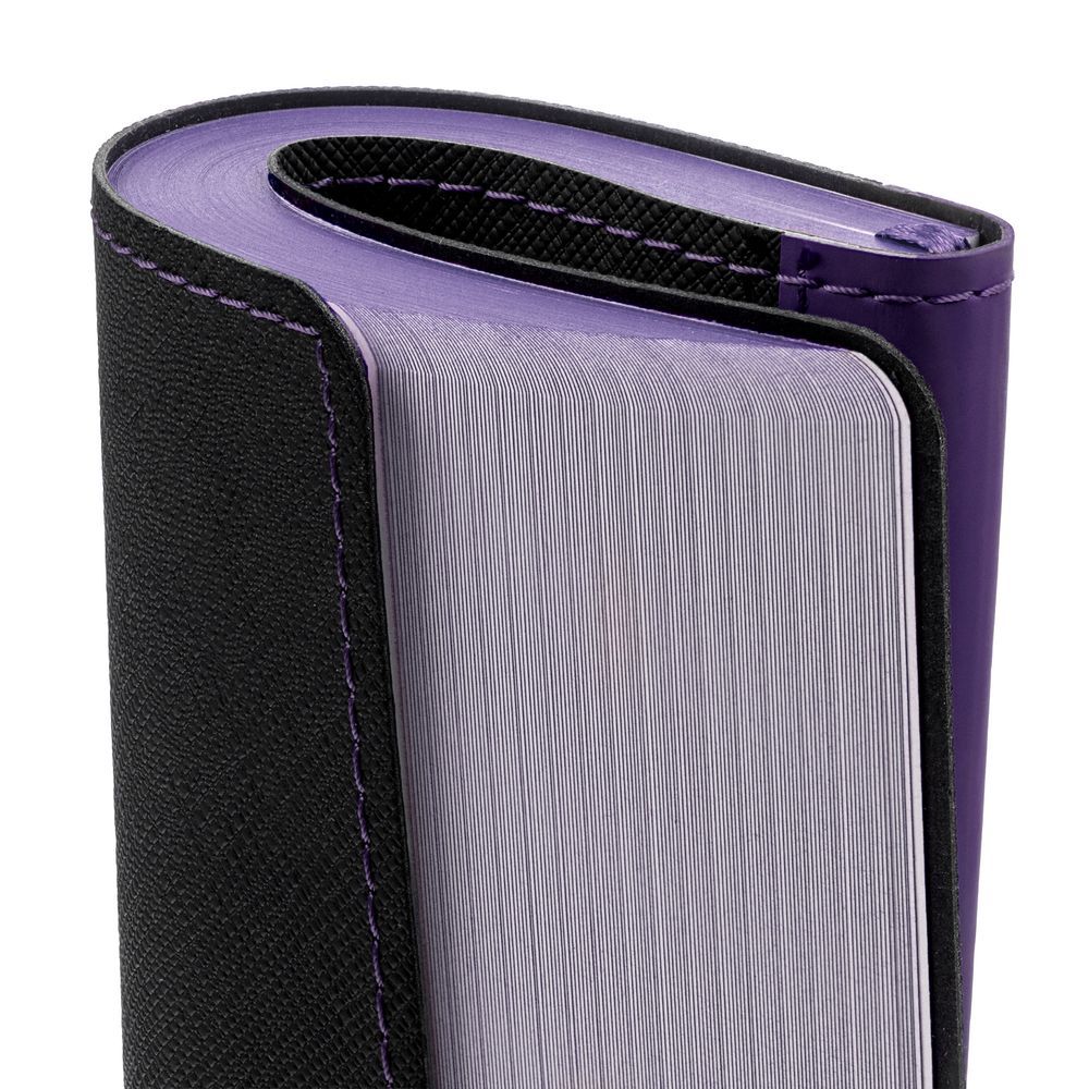 Ежедневник с гибкой обложкой выполнен из материала Nice Touch, черный АА и Soft Touch, фиолетовый UU, дополнен ляссе фиолетового цвета.