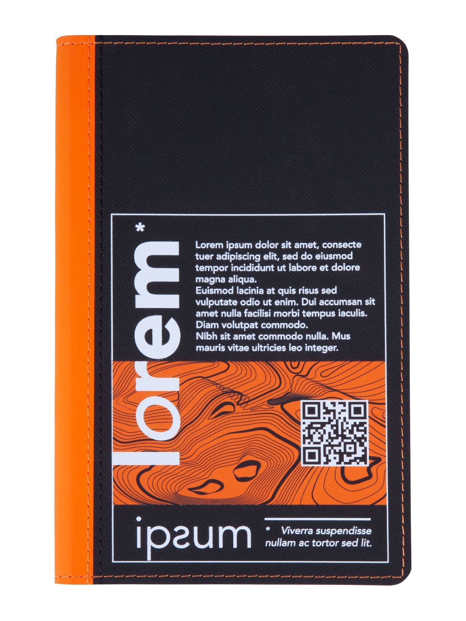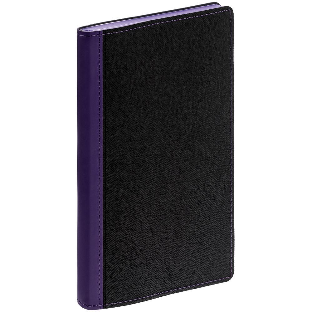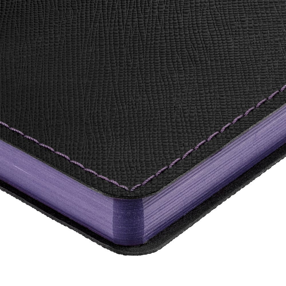 Ежедневник с гибкой обложкой выполнен из материала Nice Touch, черный АА и Soft Touch, фиолетовый UU, дополнен ляссе фиолетового цвета.