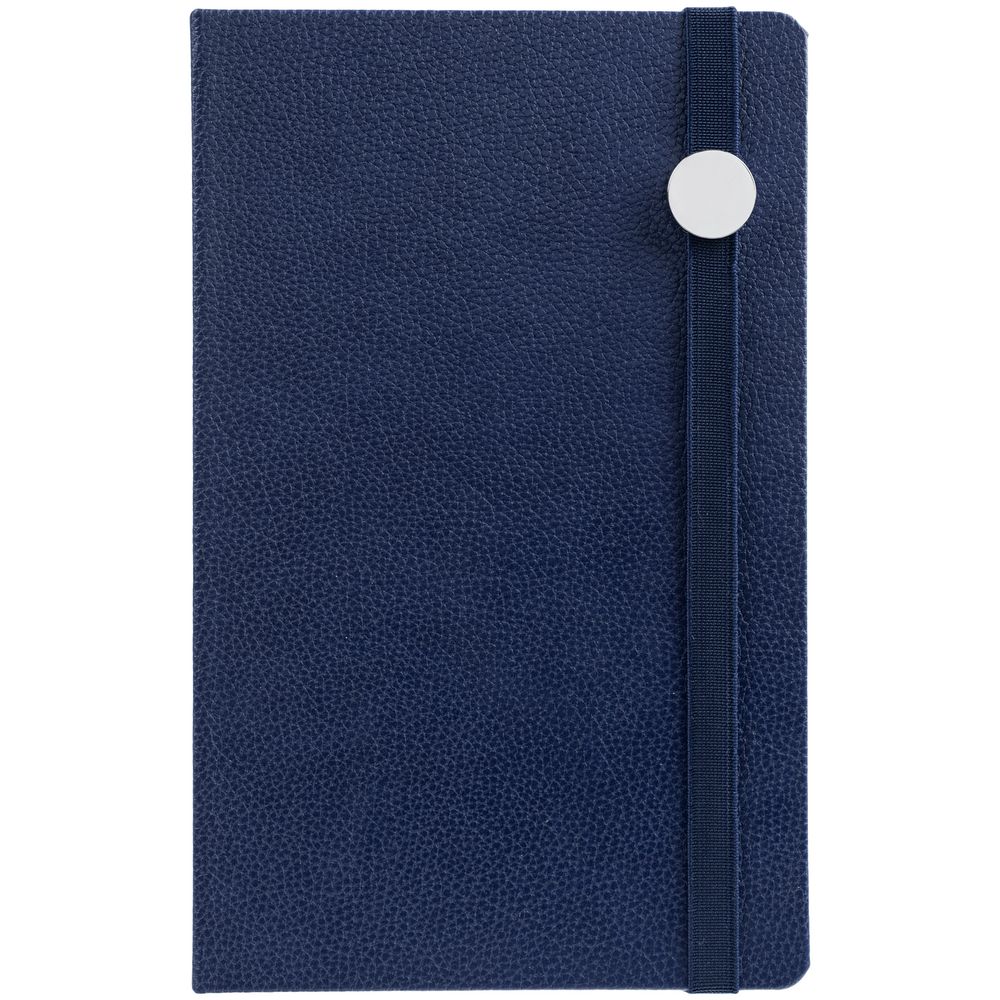 Ежедневник с твердой обложкой, выполнен из материала LaFite, темно-синий ХХ,дополнен резинкой с металлическим круглым шильдом и ляссе в цвет обложки.