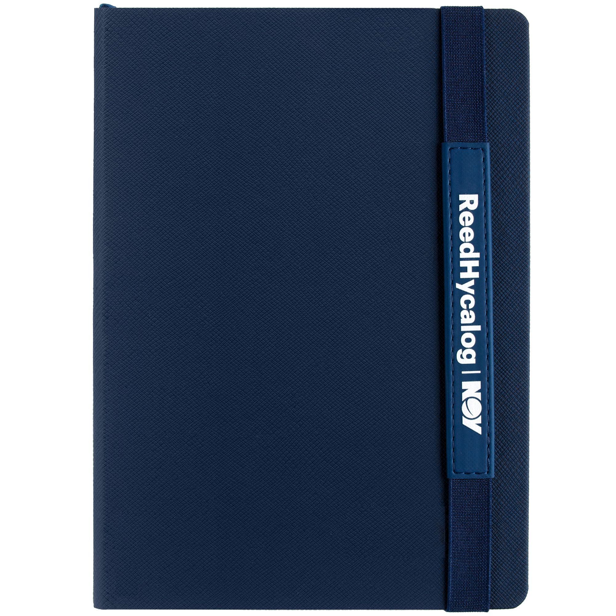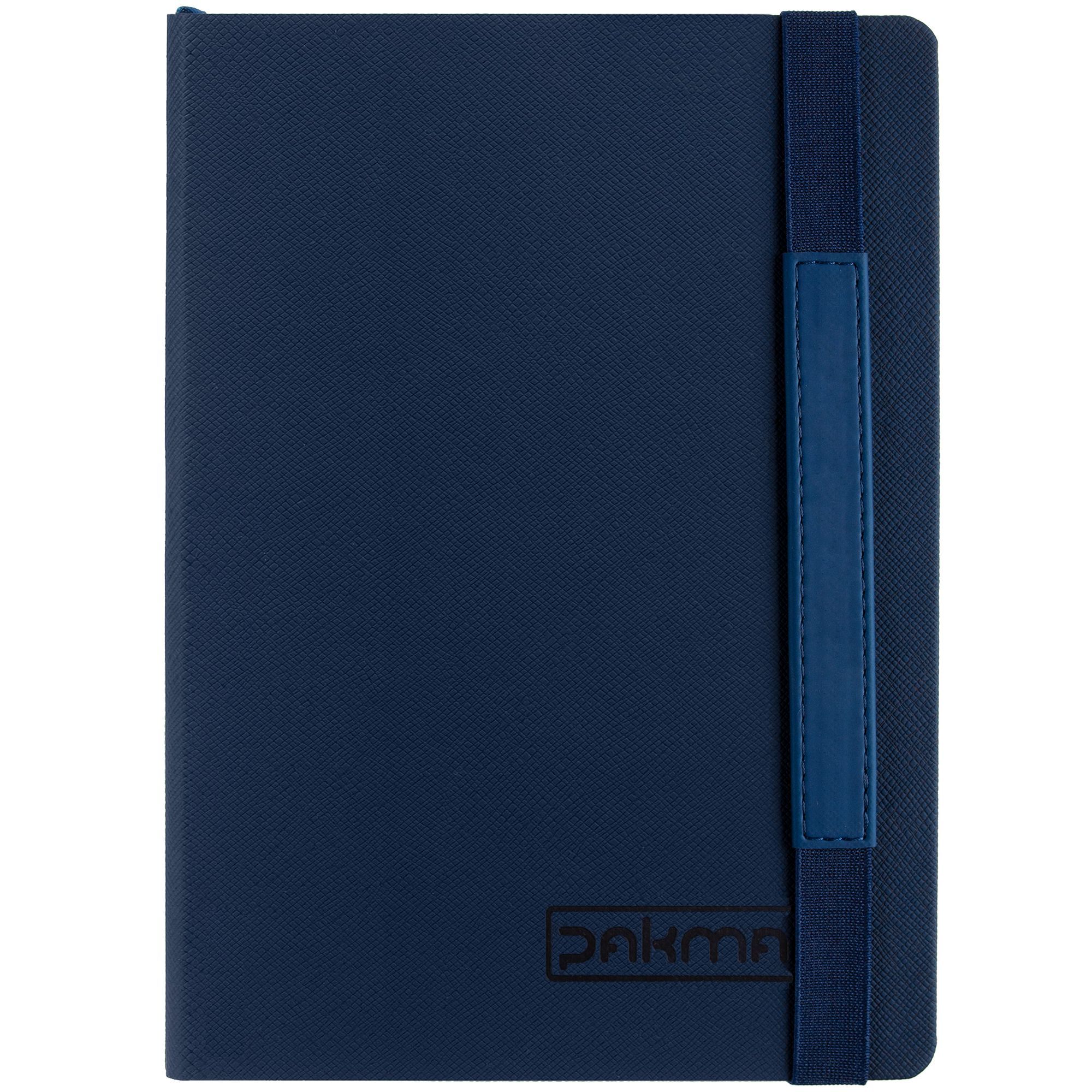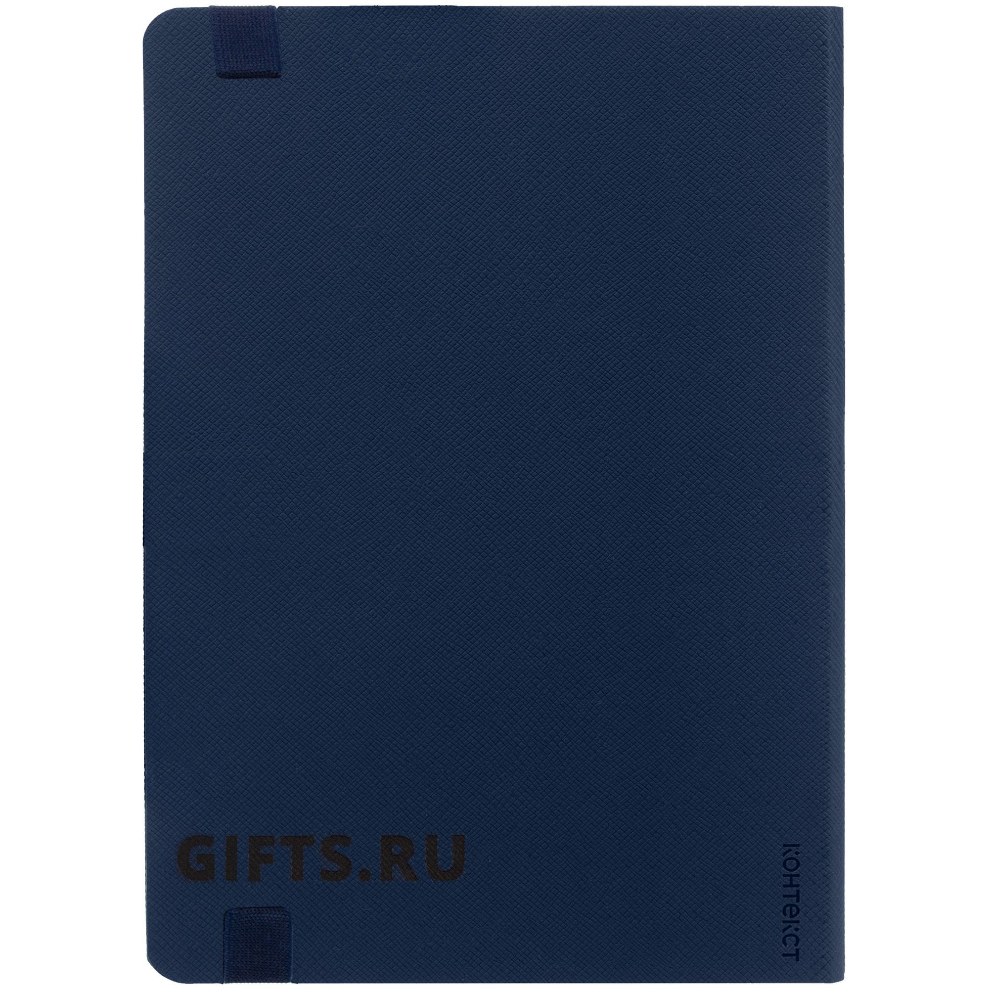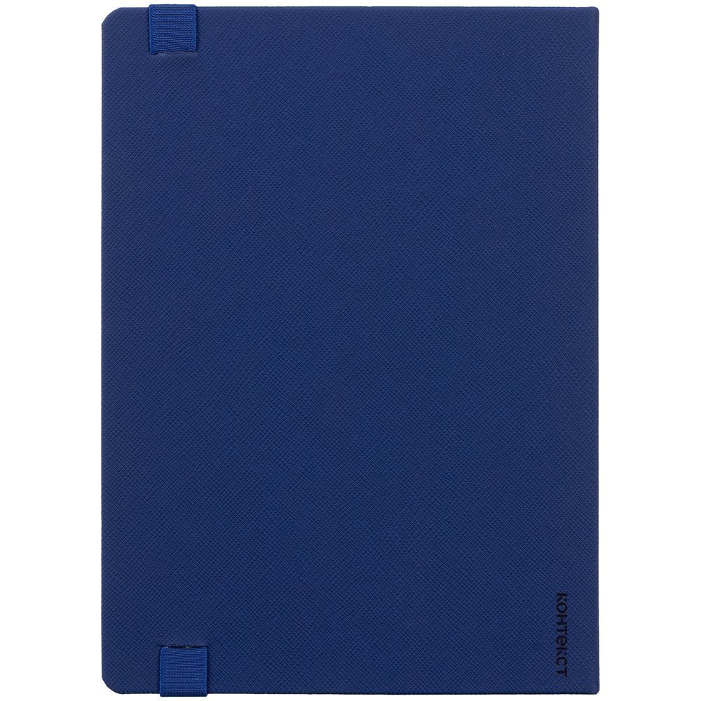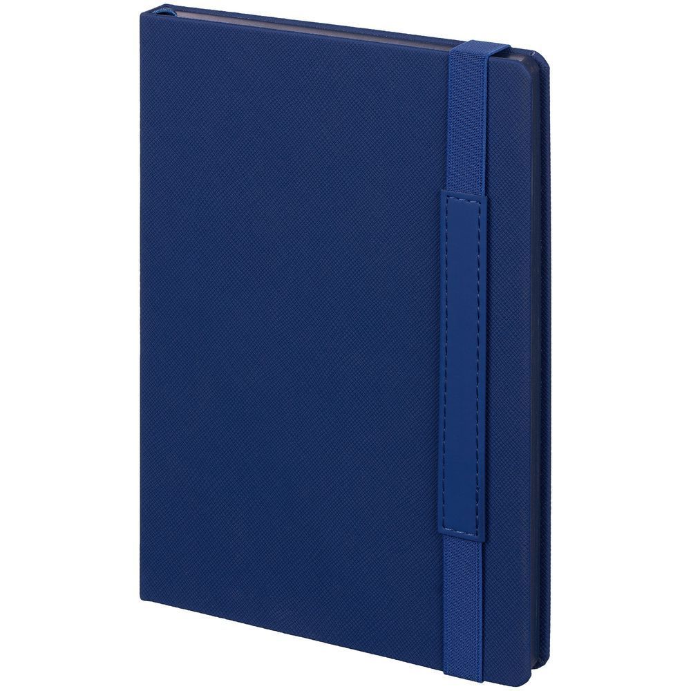 Ежедневник с твердой обложкой, выполнен из материала Nice Touch, синий, дополнен резинкой с лейблом из материала Soft Touch Ultra и ляссе в цвет обложки.