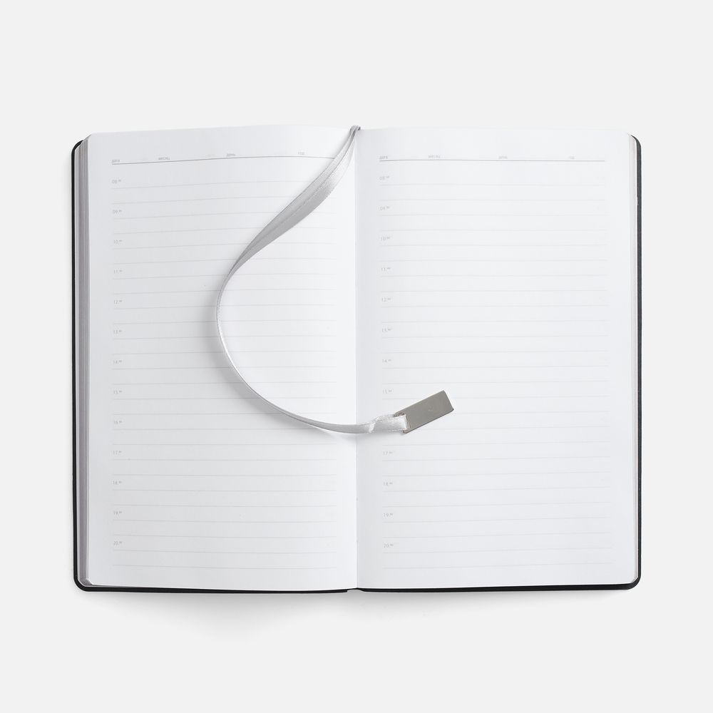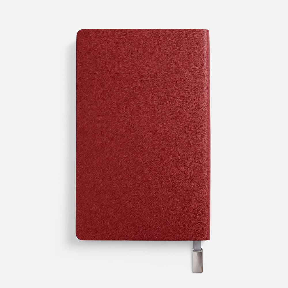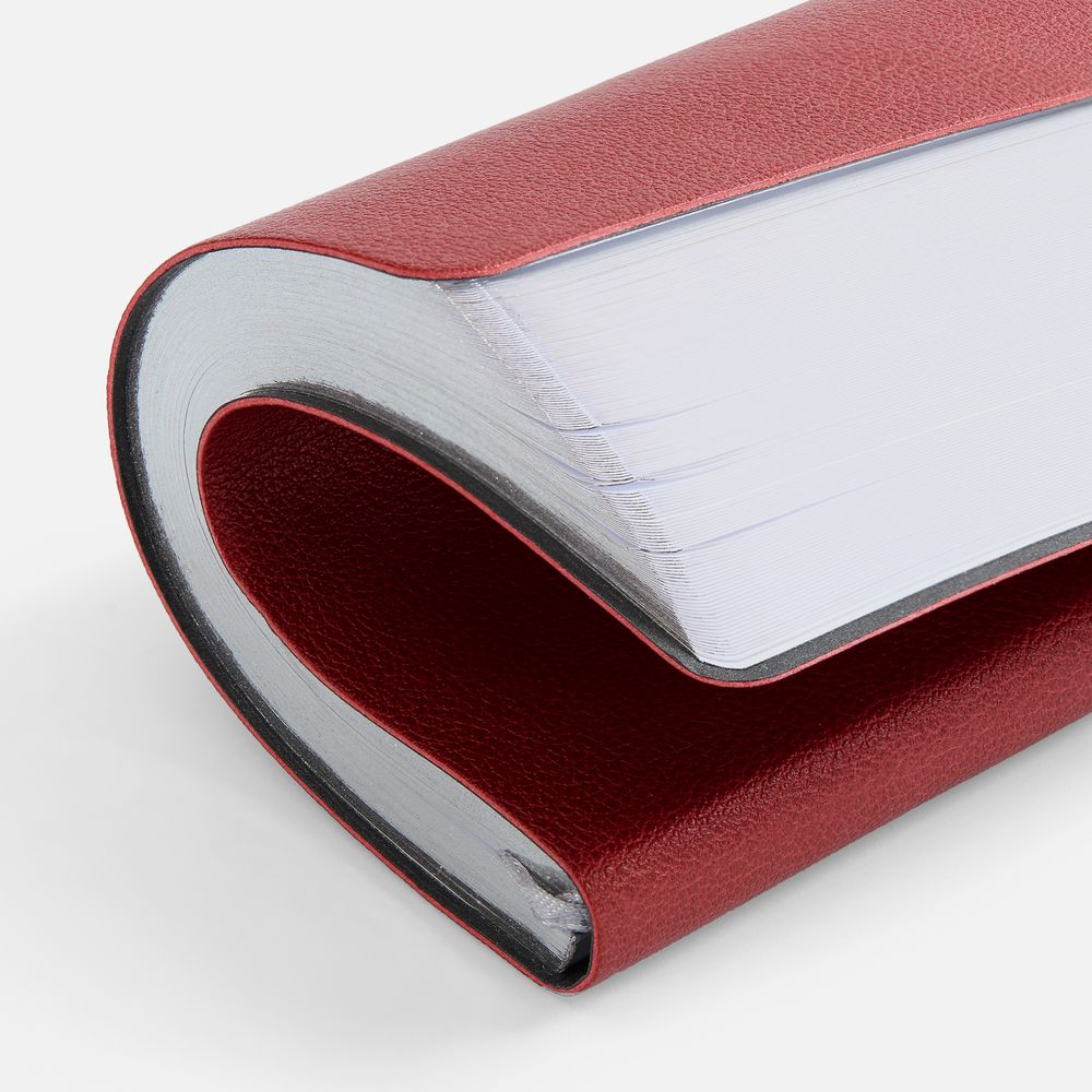 Ежедневник с гибкой обложкой, выполнен из материала Petrus, красный РР, дополнен серым ляссе с металлическим шильдиком.