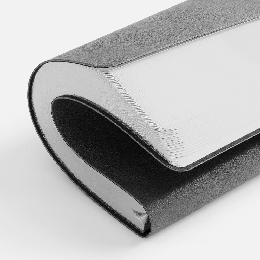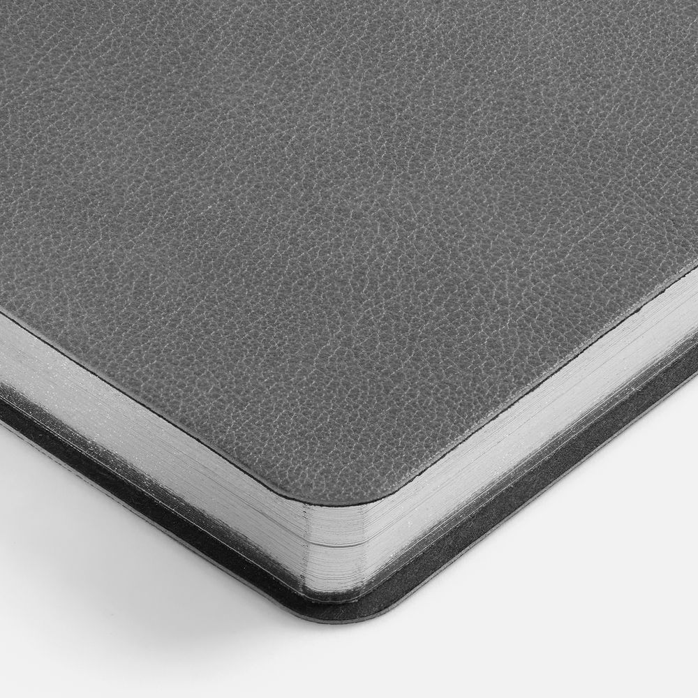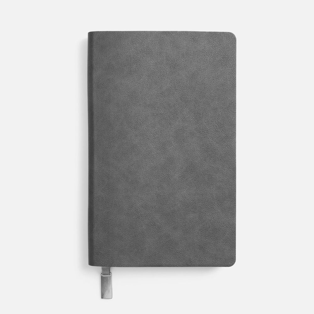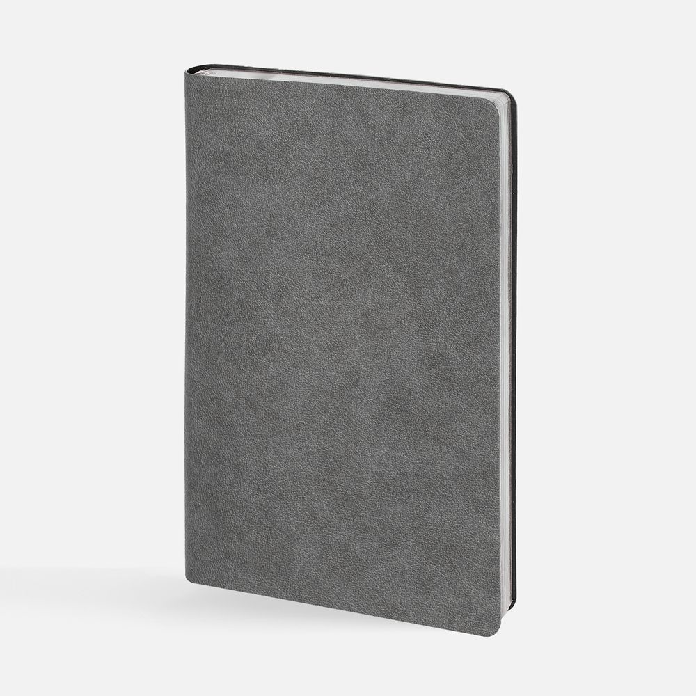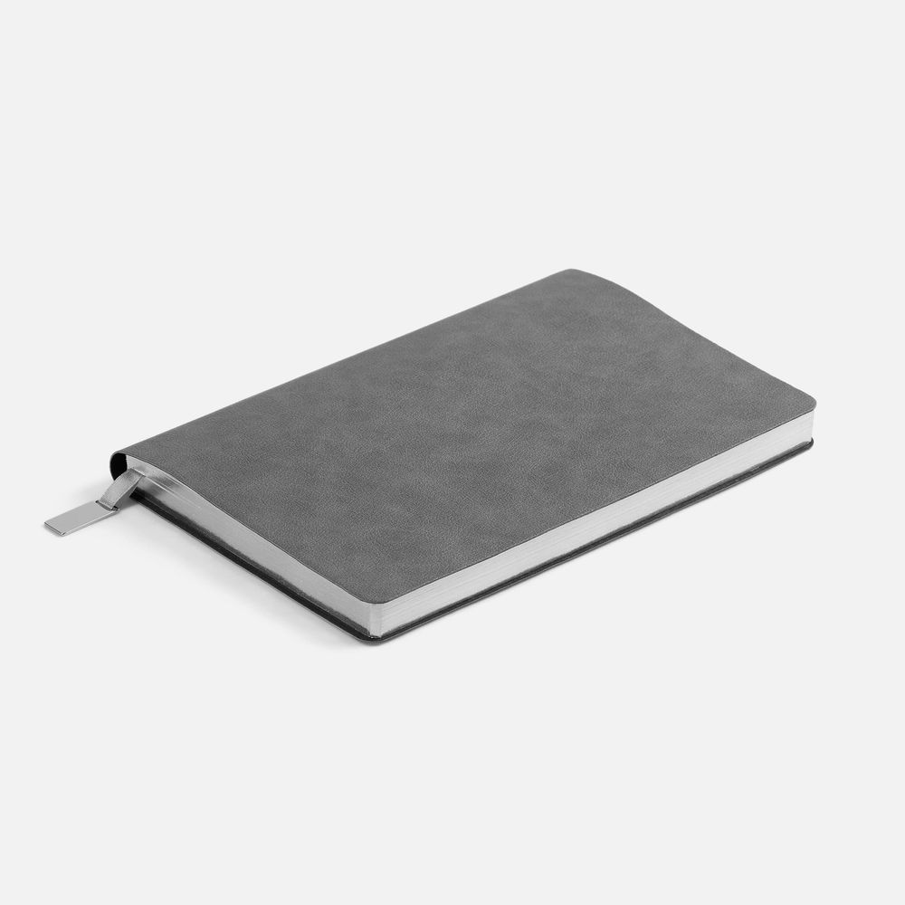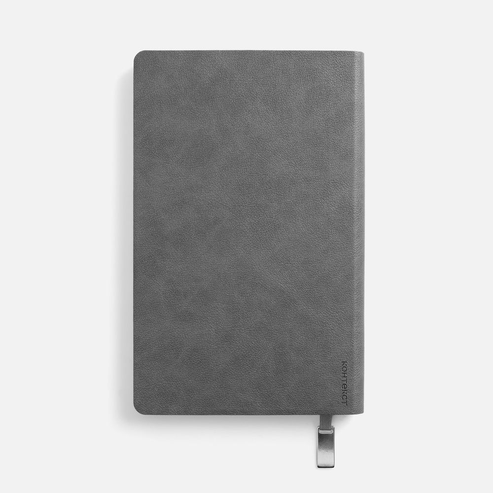 Ежедневник с гибкой обложкой, выполнен из материала Petrus, серый СС, дополнен серым ляссе с металлическим шильдиком.