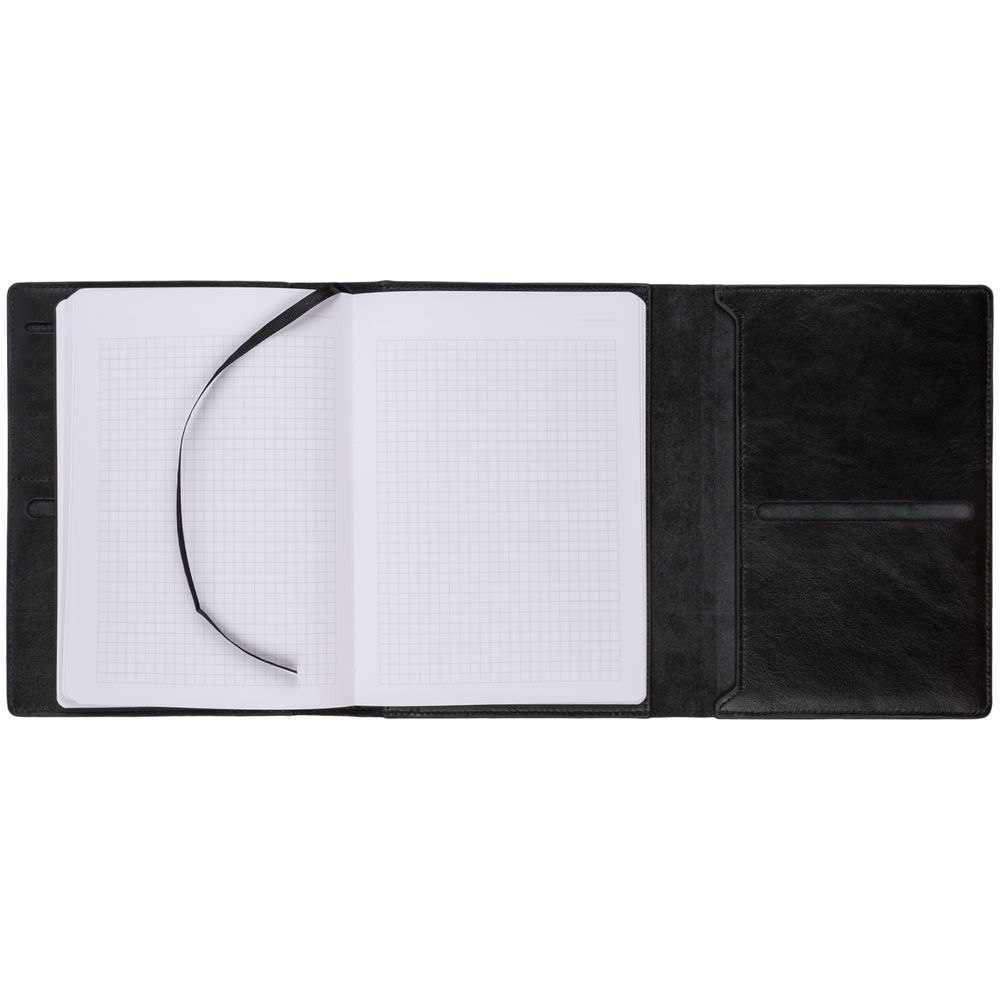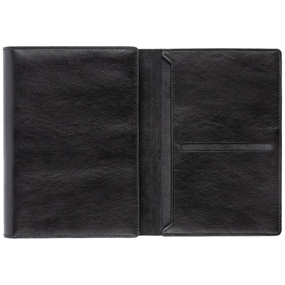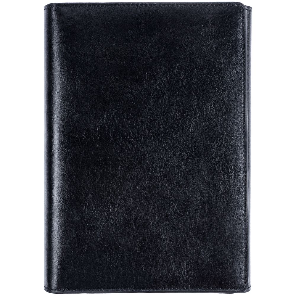Ежедневник со съемной обложкой-портфолио из натуральной кожи, с капталом, репсовым ляссе и окрашенным срезом обложки в цвет материала.