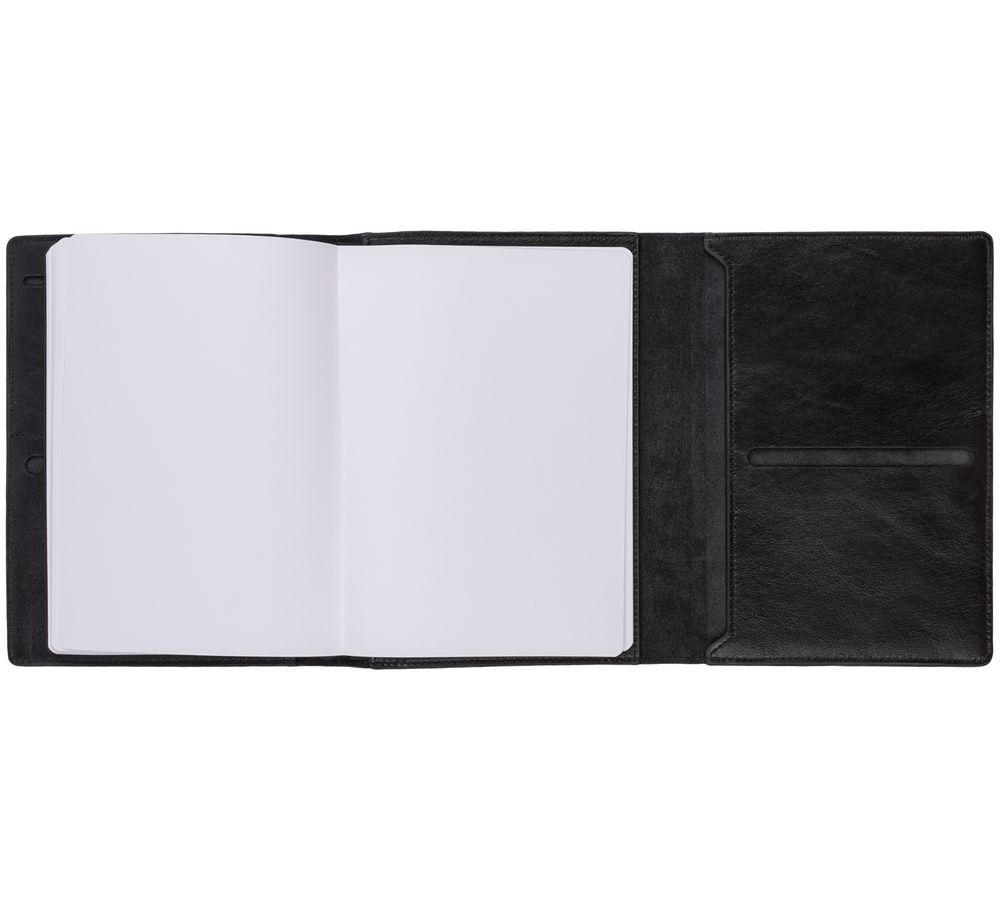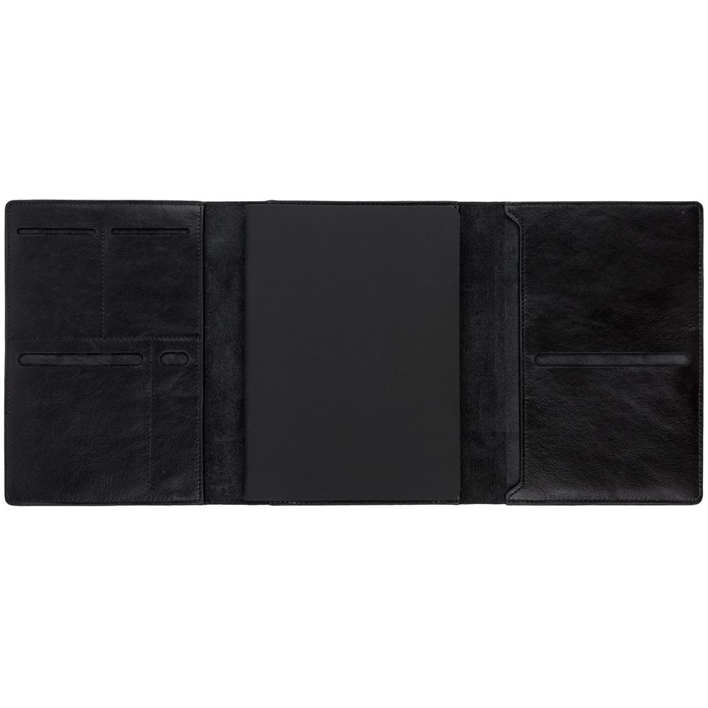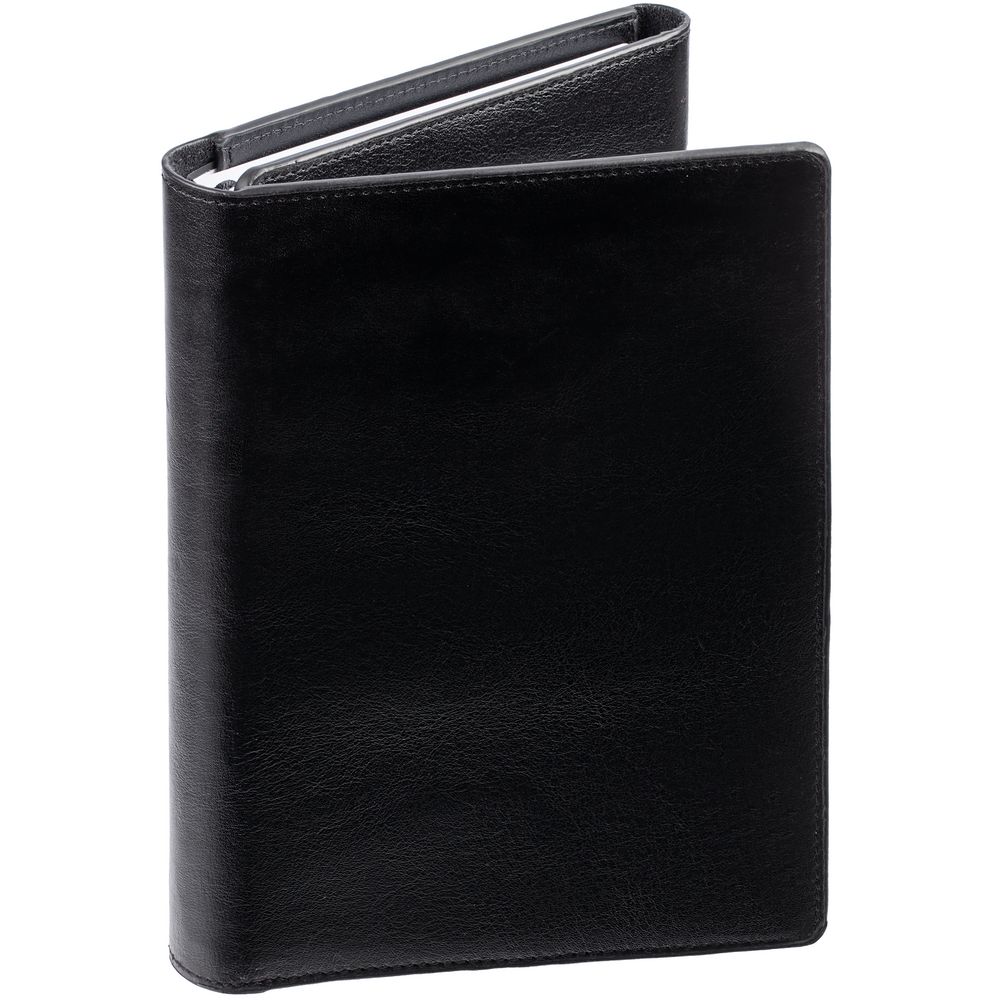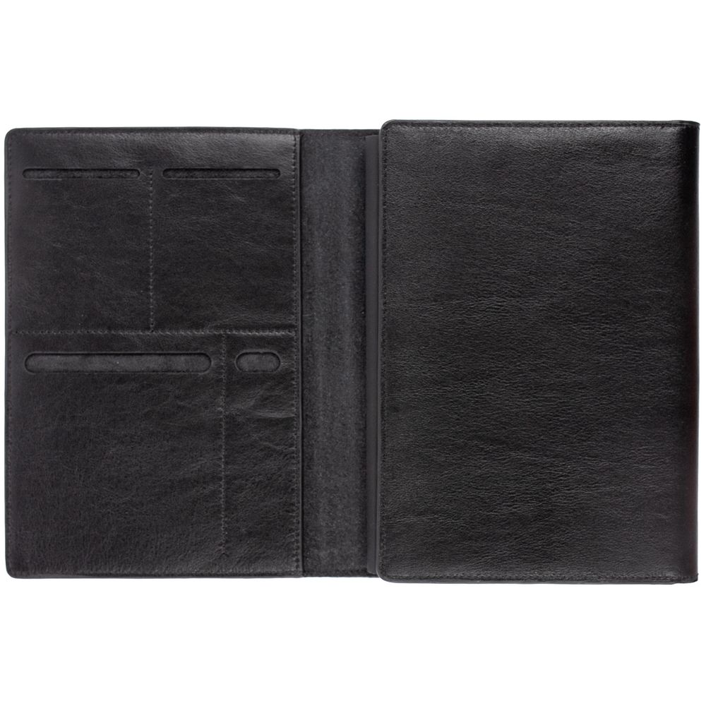 Ежедневник со съемной обложкой-портфолио из натуральной кожи, с капталом, репсовым ляссе и окрашенным срезом обложки в цвет материала.