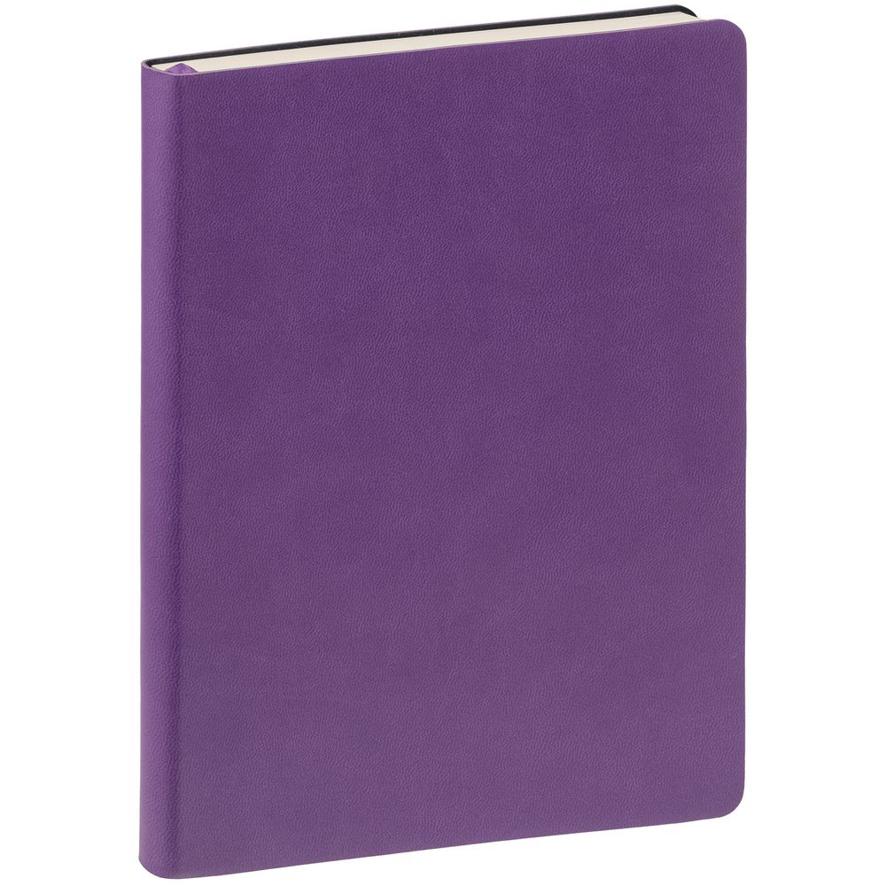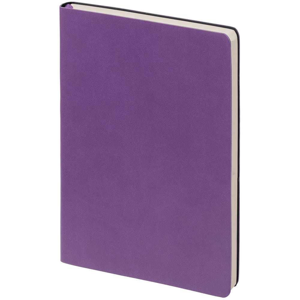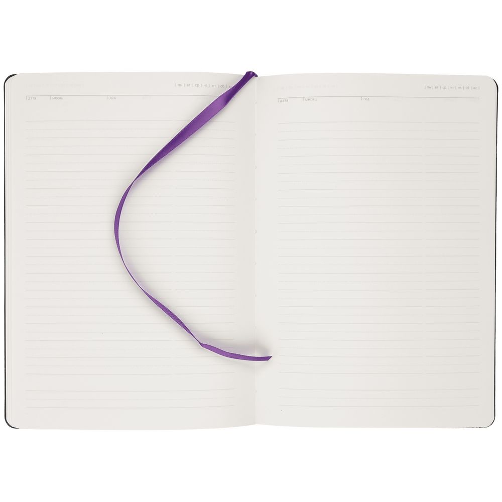 Ежедневник с гибкой обложкой, выполнен из материала Latte, фиолетовый, дополнен ляссе в цвет обложки.