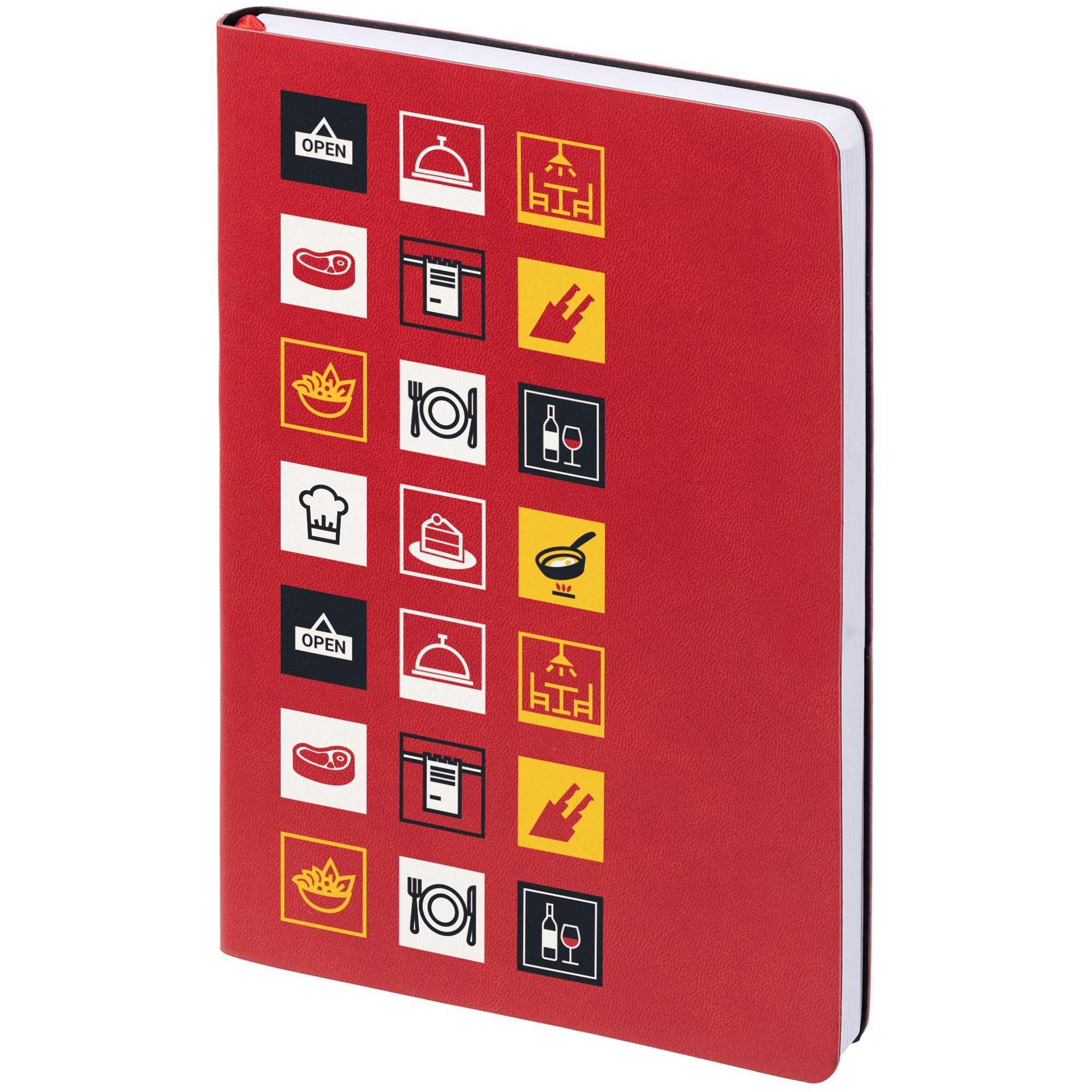 Ежедневник с гибкой обложкой, выполнен из материала Latte, красный, дополнен ляссе в цвет обложки.