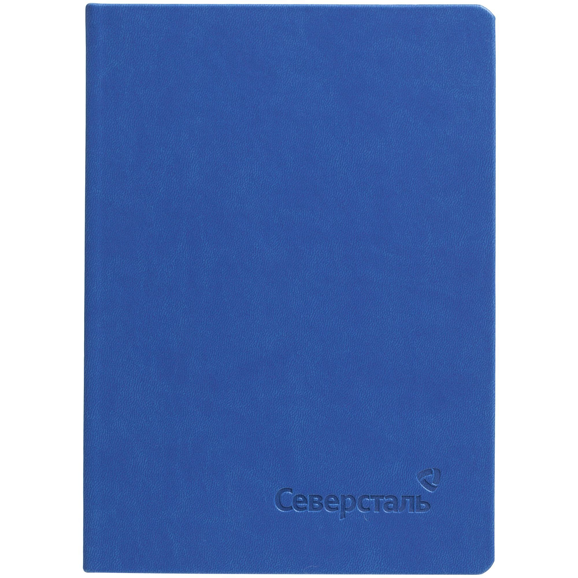 Ежедневник с гибкой обложкой, выполнен из материала Latte, ярко-синий, дополнен ляссе в цвет обложки.