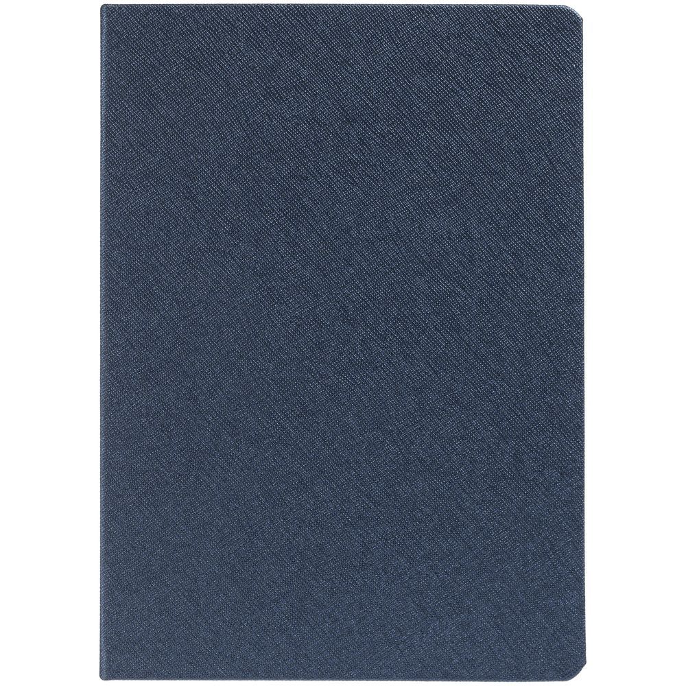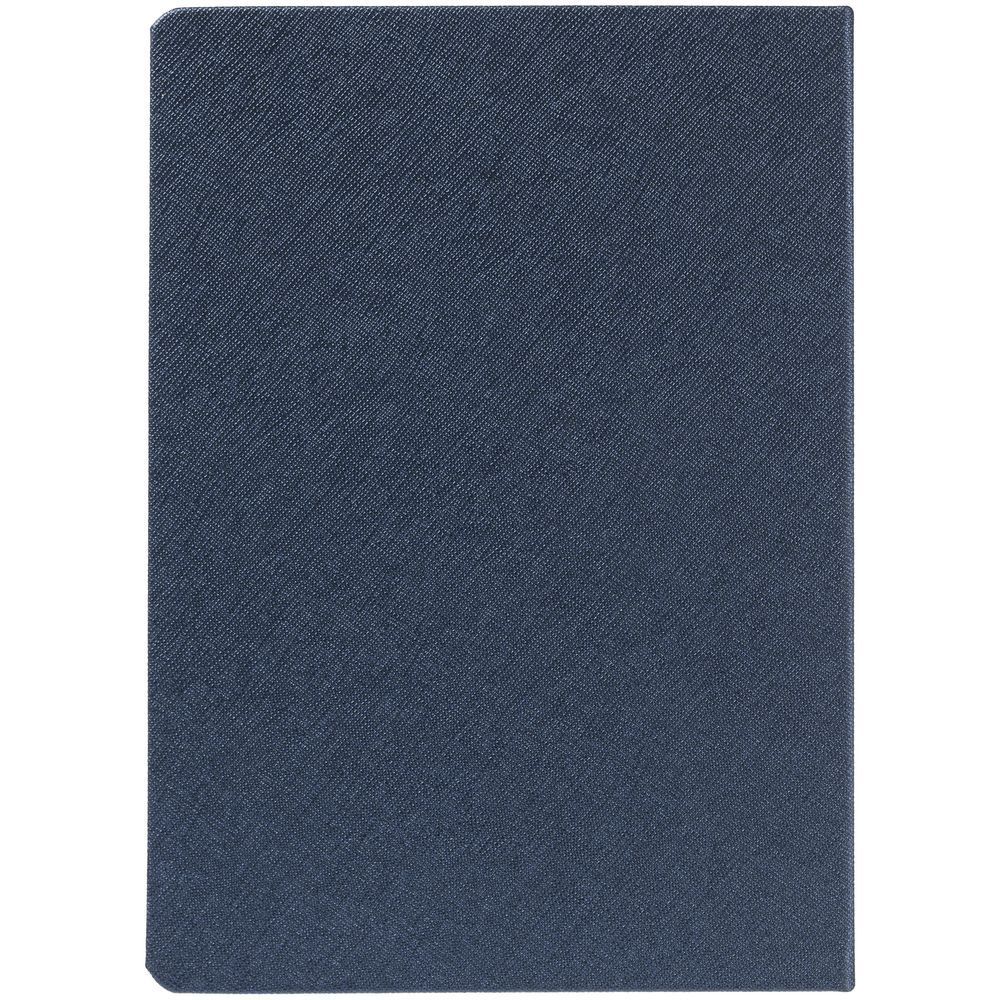 Ежедневник с твердой обложкой и серебристым обрезом, выполнен из материала Saffian, синий НН, дополнен ляссе в цвет обложки.