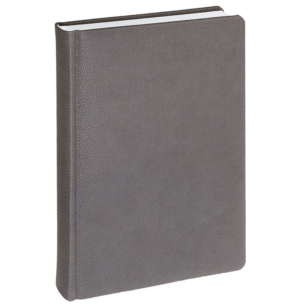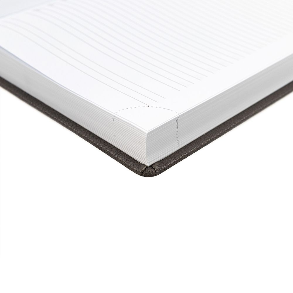 Ежедневник в твердой обложке c поролоном, выполнен из материала La Fite, темно-серый EE, дополнен ляссе белого цвета.