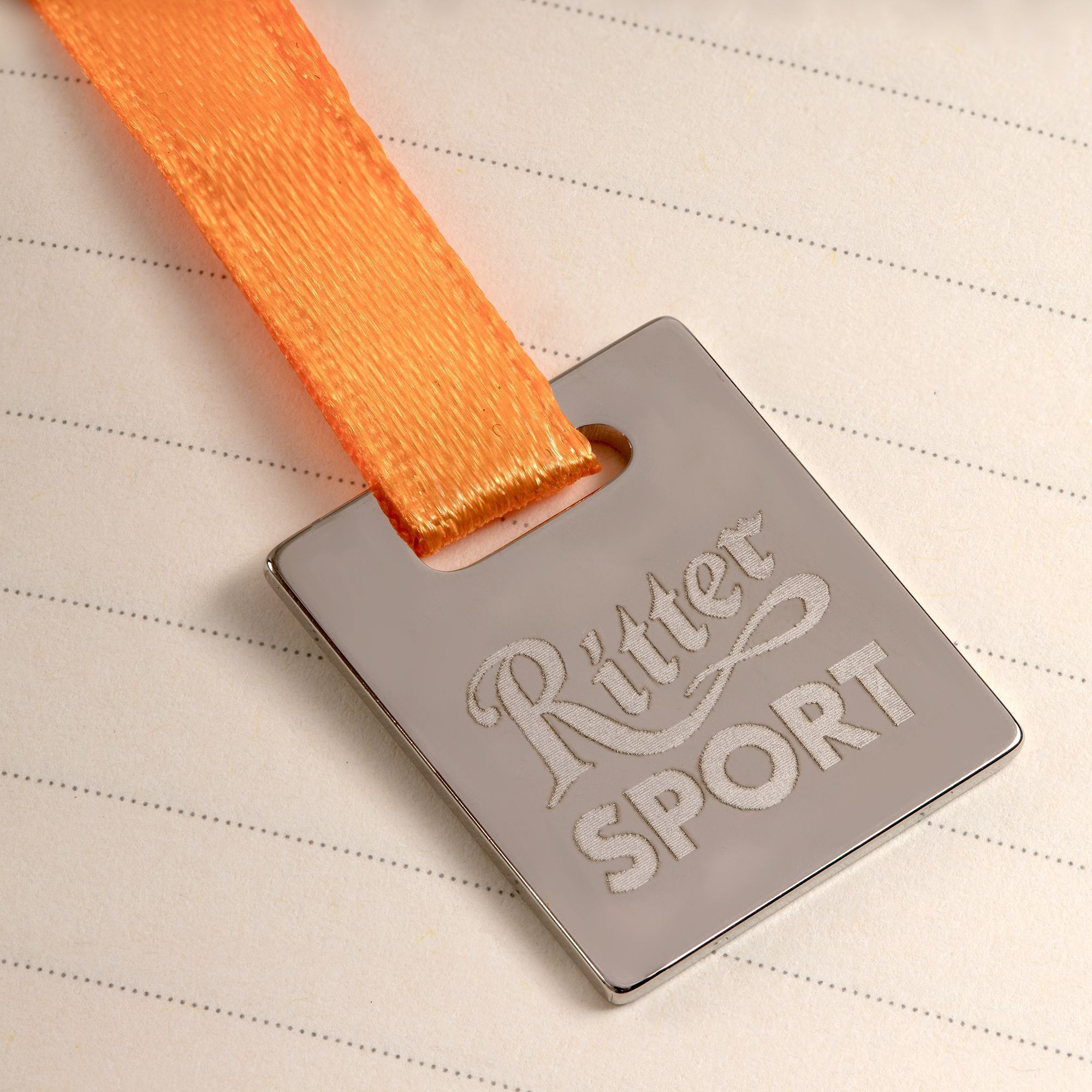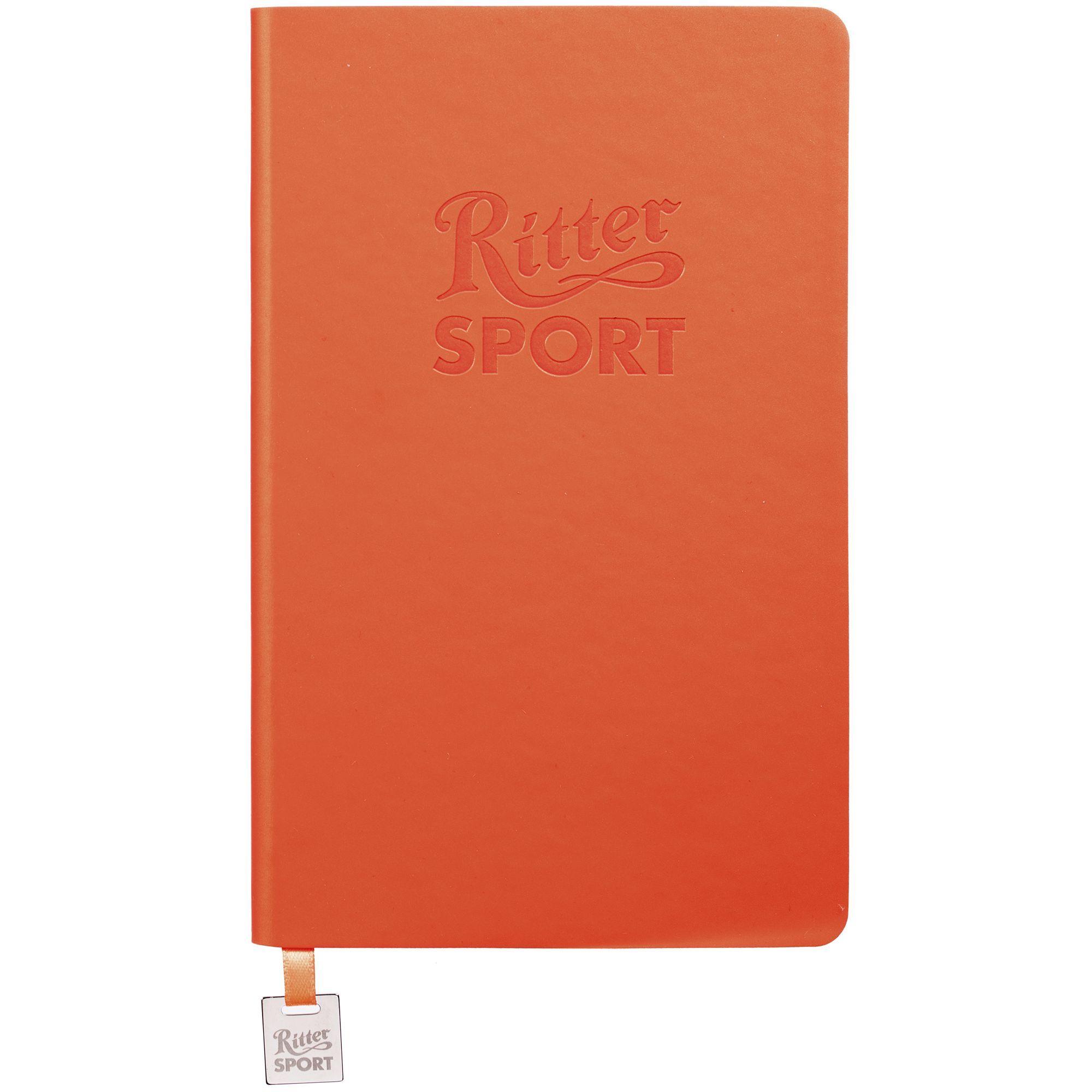 Ежедневник с гибкой обложкой, выполнен из материалов Soft Touch Pearl, оранжевый ОО, и Latte, оранжевый (внутренняя часть обложки), дополнен ляссе в цвет обложки с металлическим шильдиком.