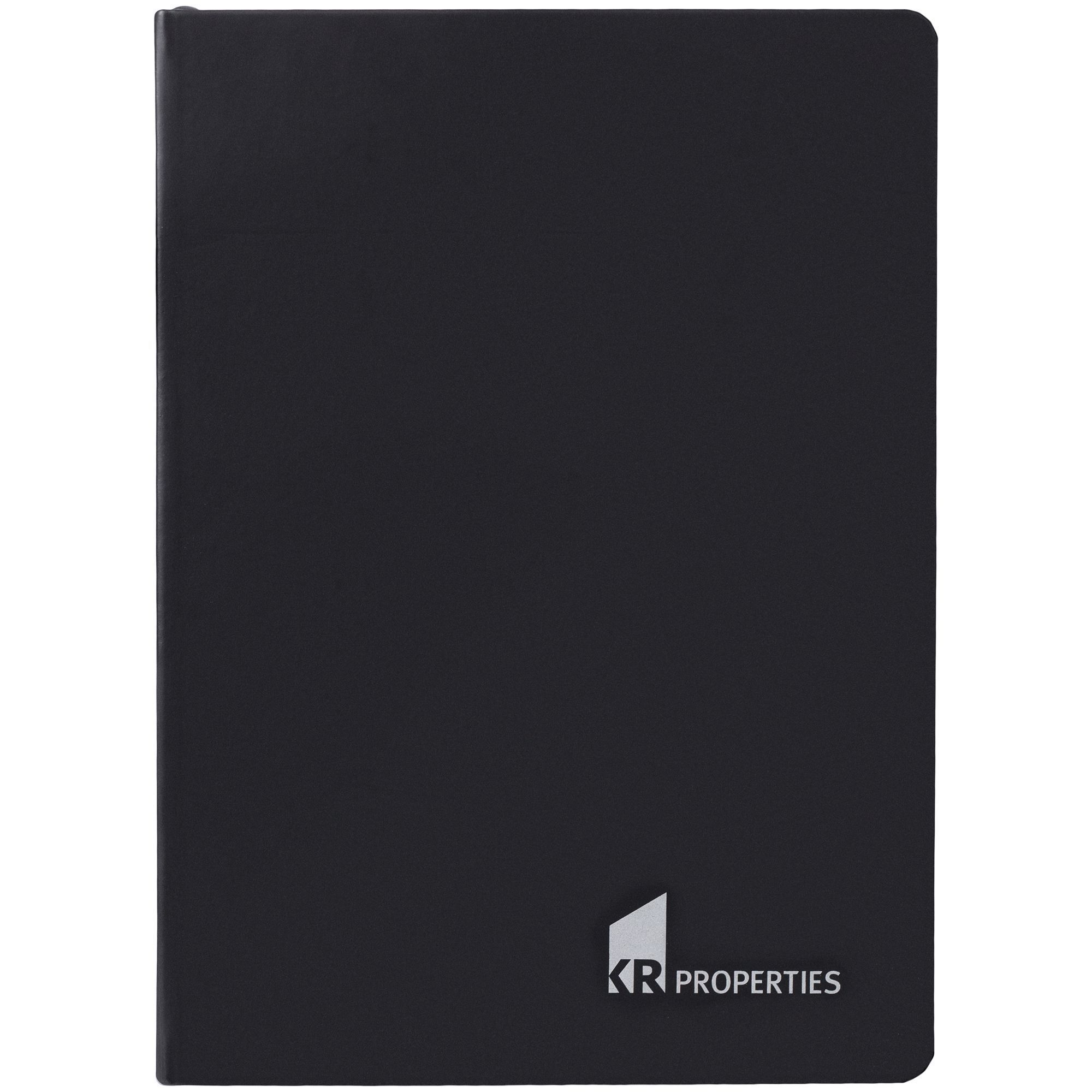 Ежедневник с твердой обложкой и тонированным обрезом, выполнен из материала Soft Touch, черный АА, дополнен ляссе в цвет обложки.