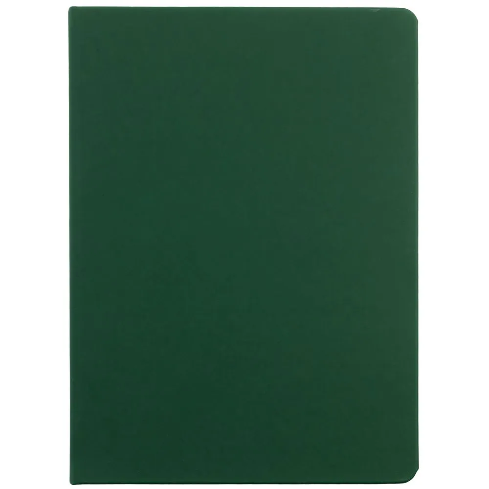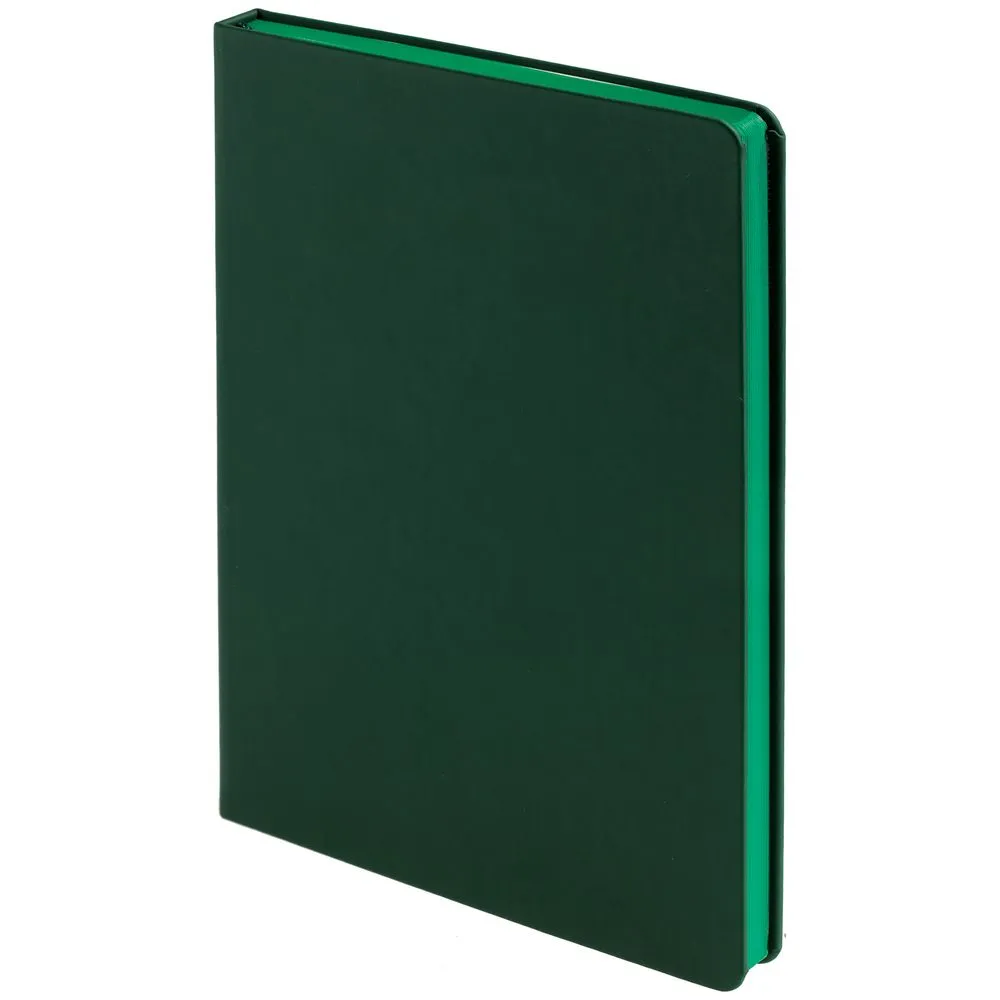 Ежедневник с твердой обложкой и тонированным обрезом, выполнен из материала Soft Touch, зеленый FF, дополнен ляссе в цвет обложки.