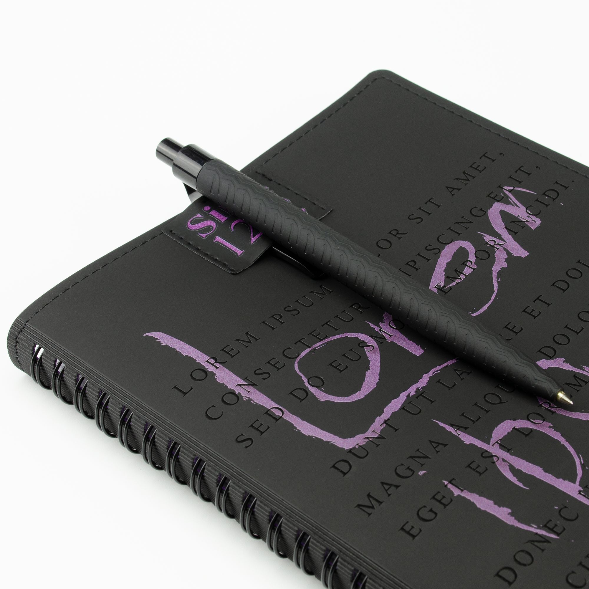 Ежедневник с гибкой обложкой, выполнен из материалов Soft Touch, черный АА и Nice touch,серый СС.