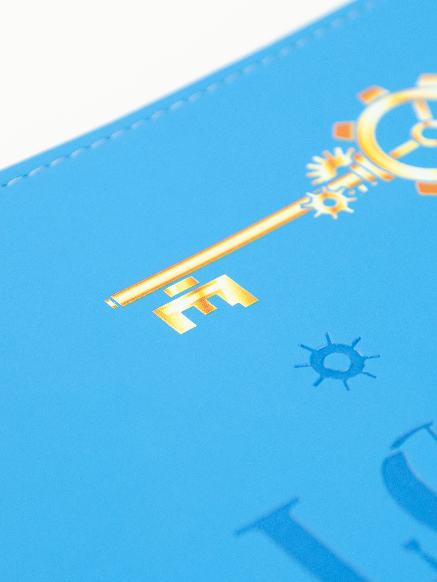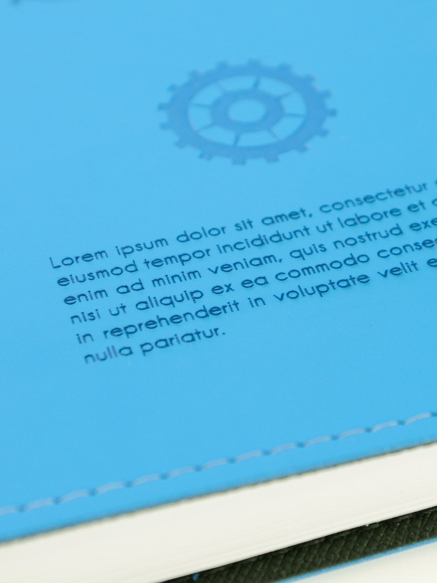 Ежедневник с гибкой обложкой, выполнен из материалов Soft Touch Ultra, голубой JJ и Nice touch, черный АА.