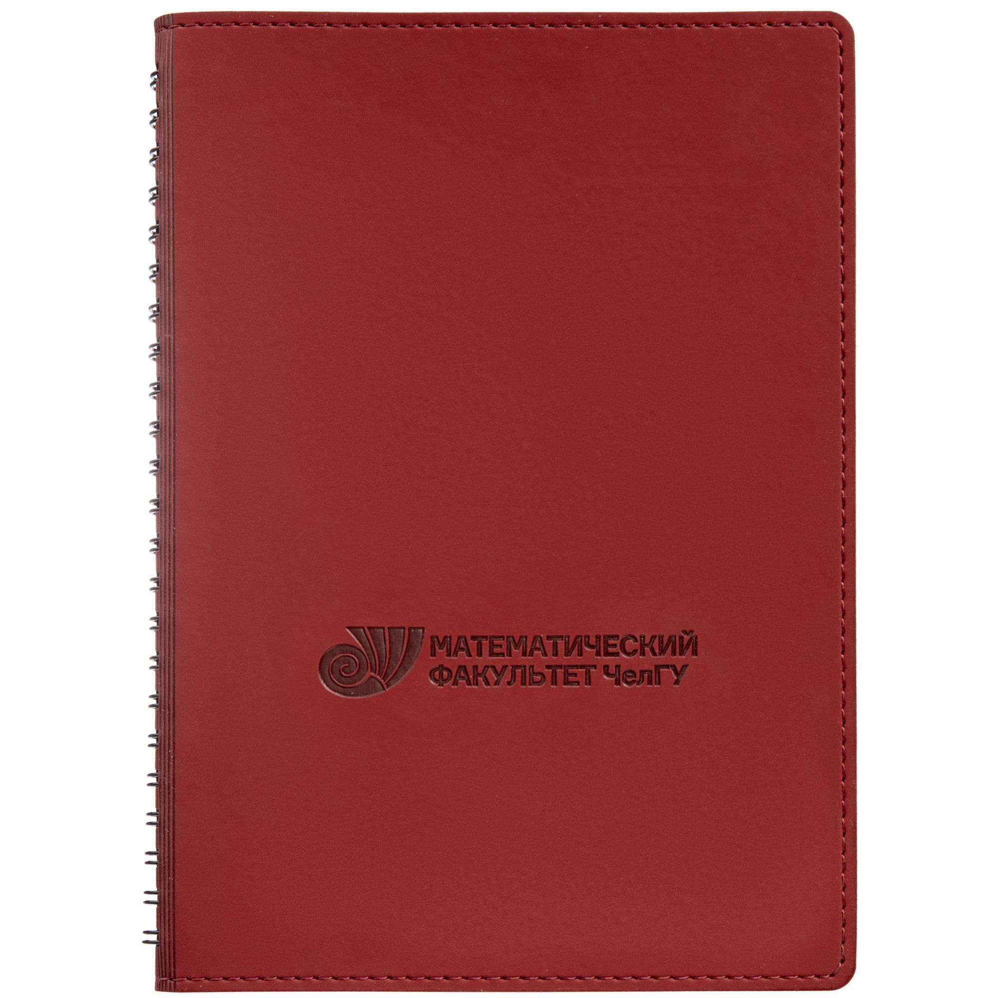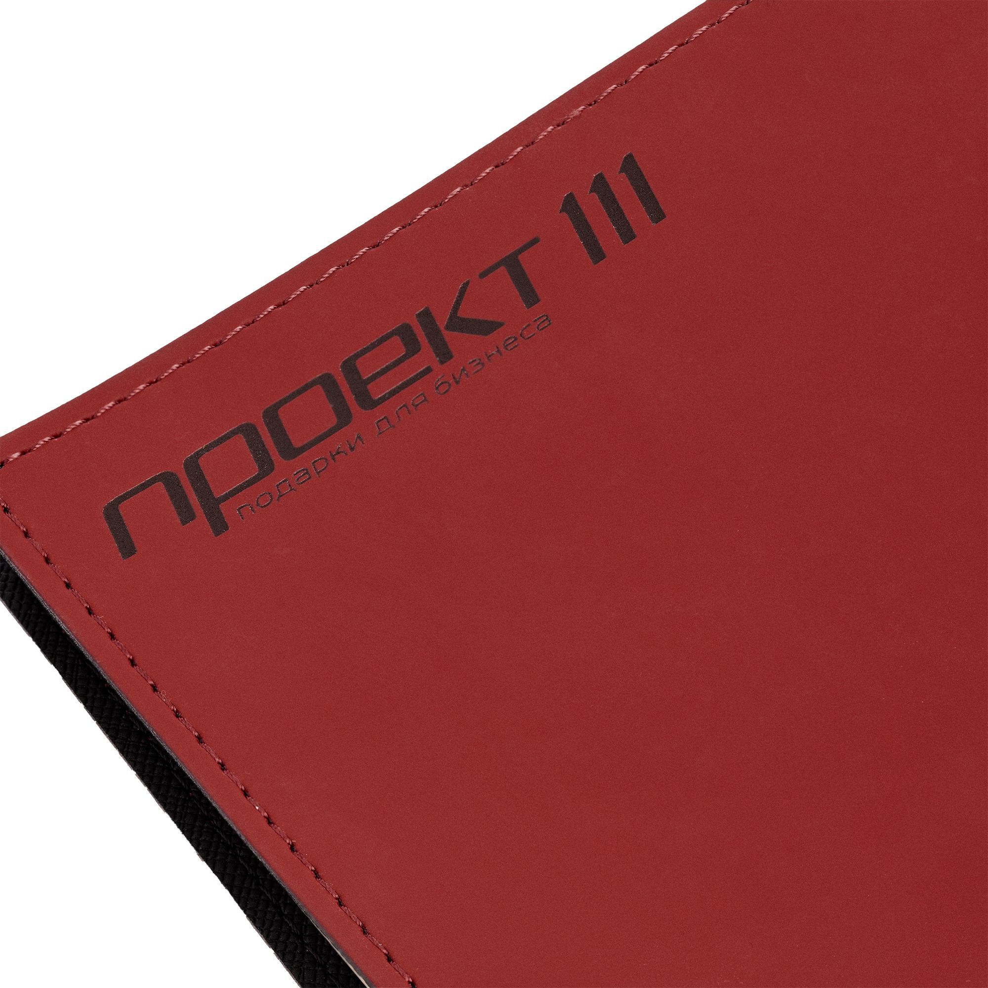 Ежедневник с гибкой обложкой, выполнен из материалов Soft Touch, красный РР и Nice Touch, черный АА.