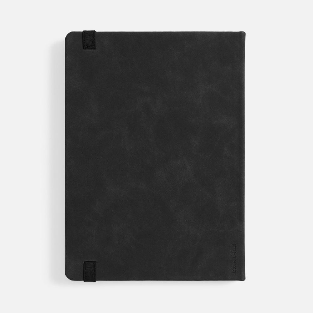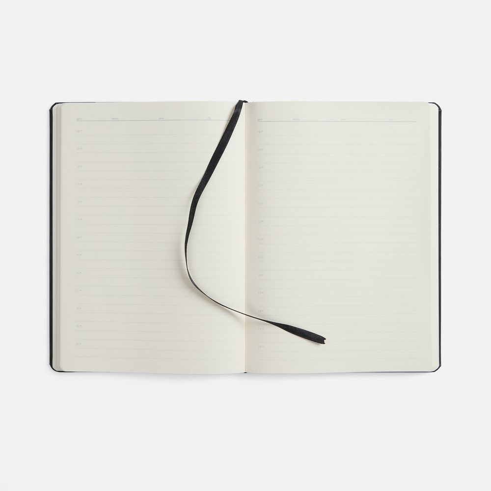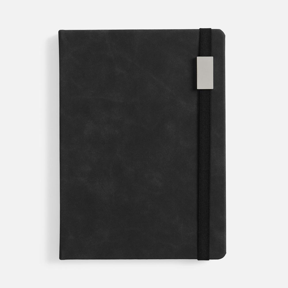 Ежедневник с твердой обложкой, выполнен из материала Nubuck Touch, черный AA, дополнен ляссе в цвет обложки.