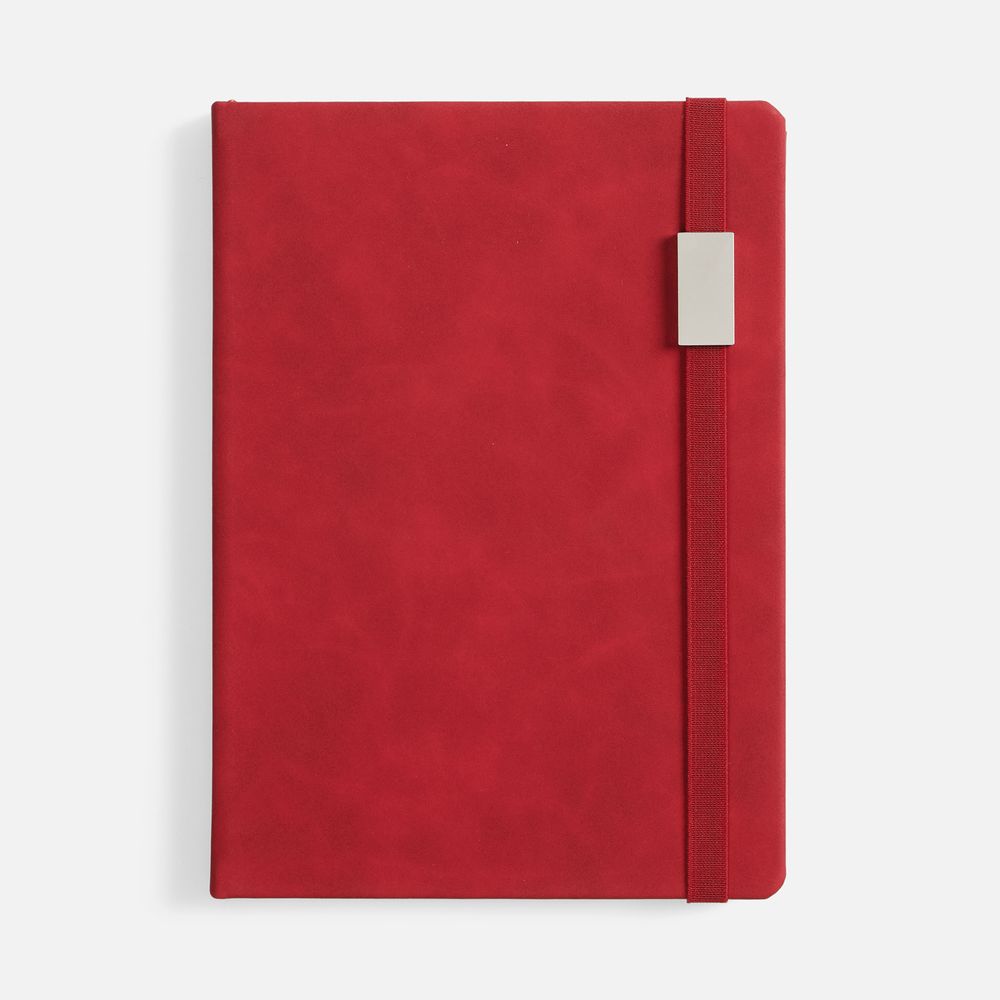 Ежедневник с твердой обложкой, выполнен из материала Nubuck Touch, красный PP, дополнен ляссе в цвет обложки.