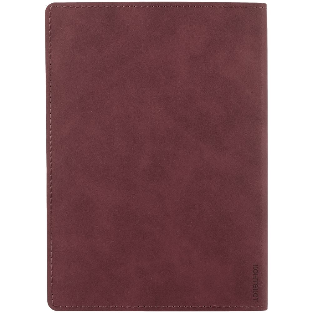 Ежедневник с гибкой обложкой, выполнен из материала Nubuck Touch, винный SS, дополнен ляссе в цвет обложки.