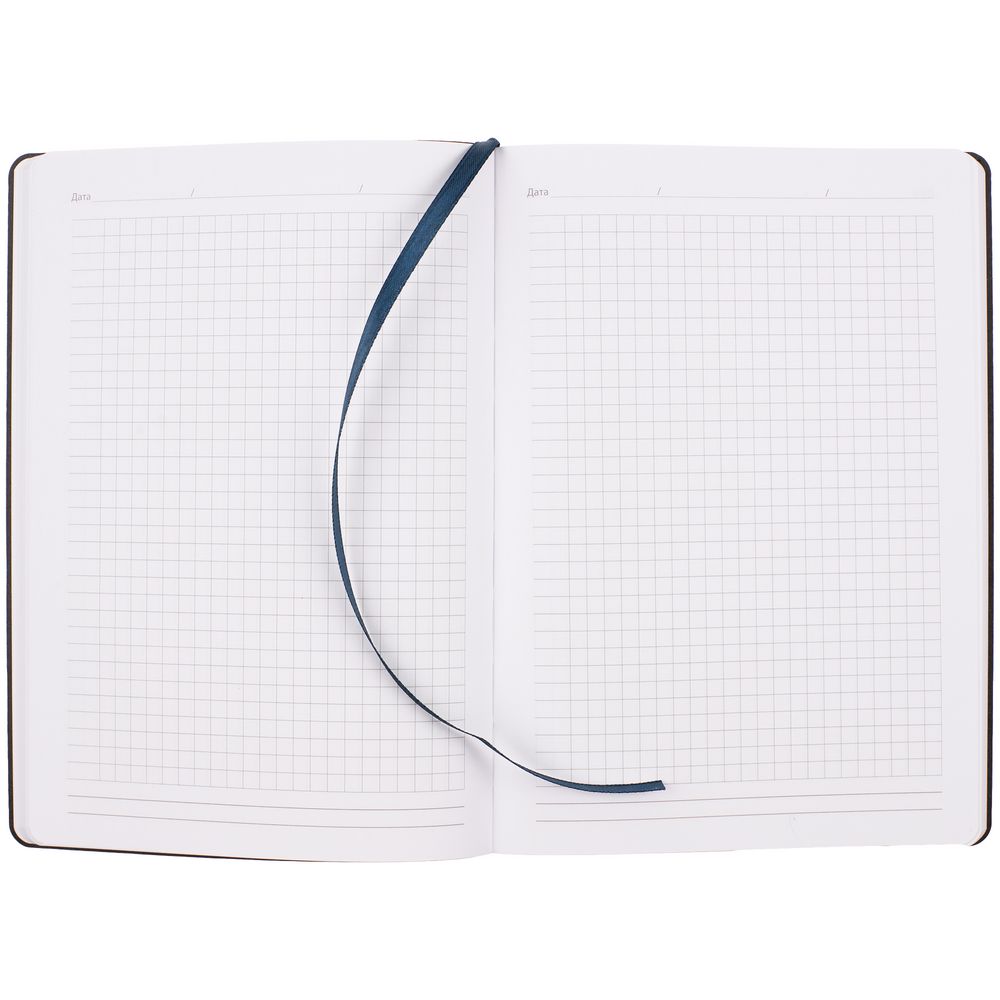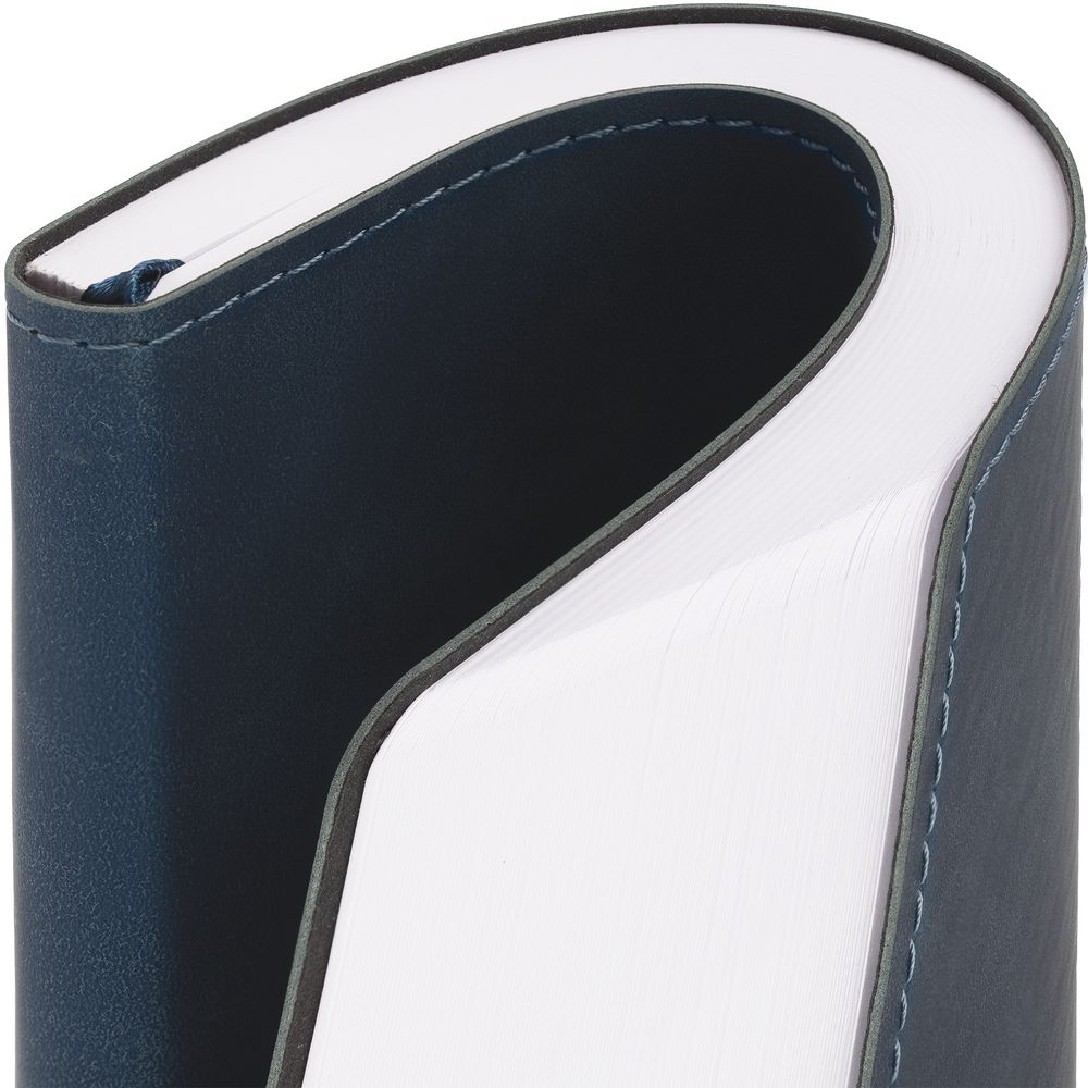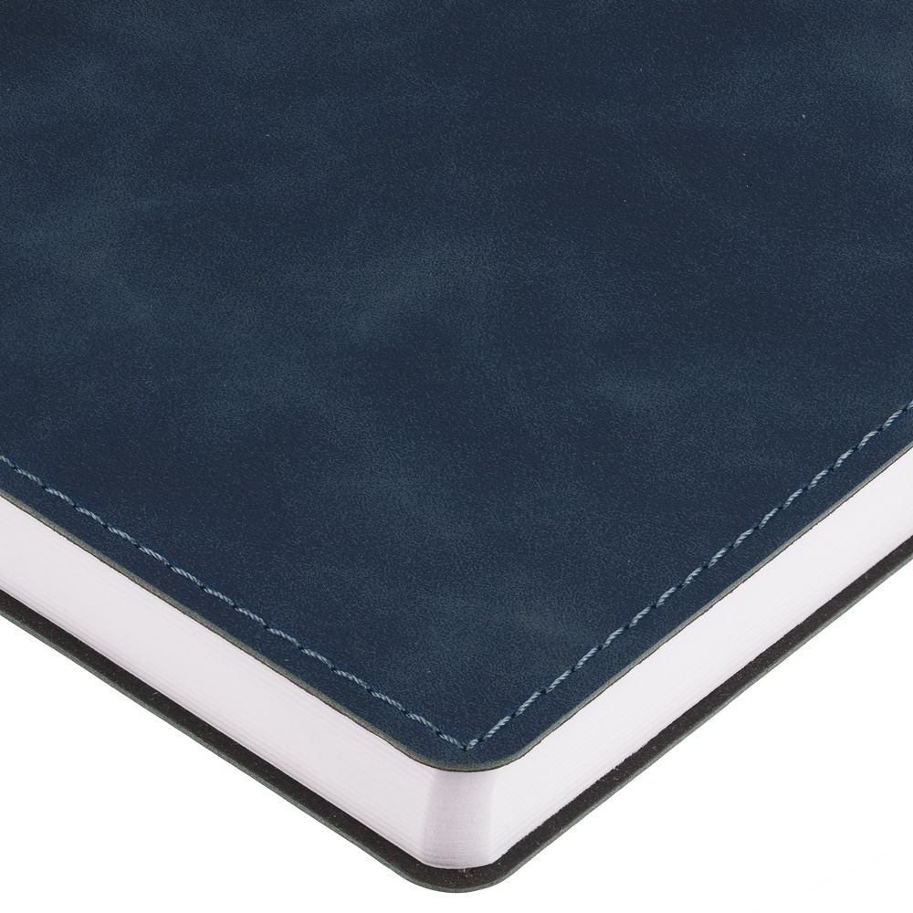 Ежедневник с гибкой обложкой, выполнен из материала Nubuck Touch, темно-синий ХХ, дополнен ляссе темно-синего цвета.