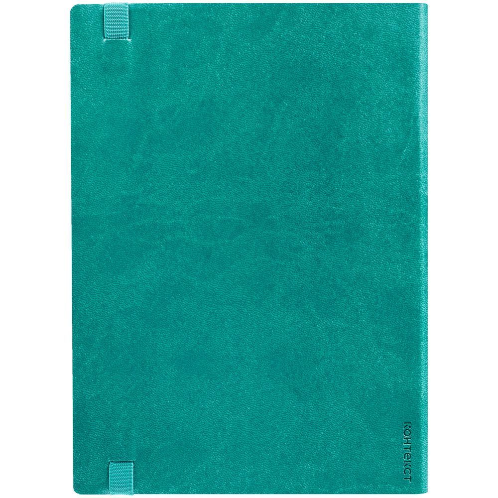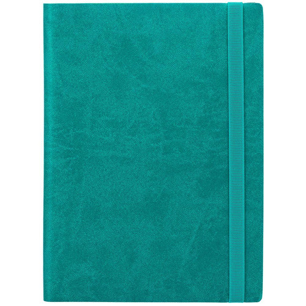 Ежедневник с гибкой обложкой выполнен из материала Brand, морская волна II, и дополнен резинкой шириной 1 см, капталом и ляссе в цвет обложки.