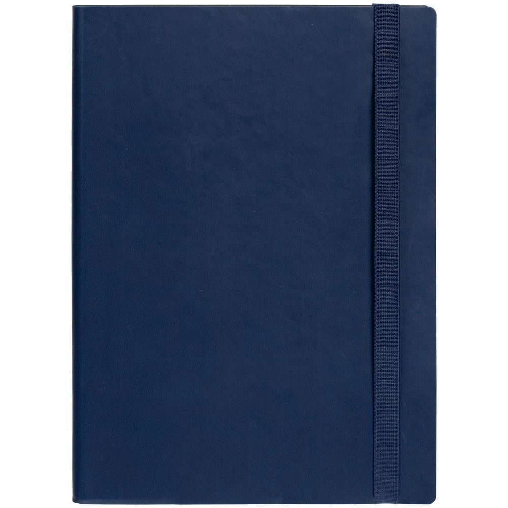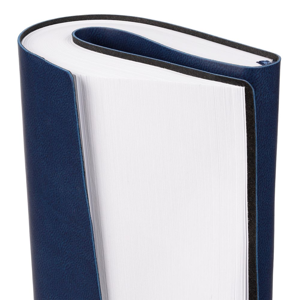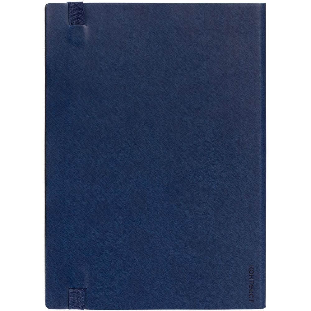 Ежедневник с гибкой обложкой, выполнен из материала Latte, темно-синий НН, дополнен резинкой шириной 1 см, капталом и ляссе темно-синего цвета.