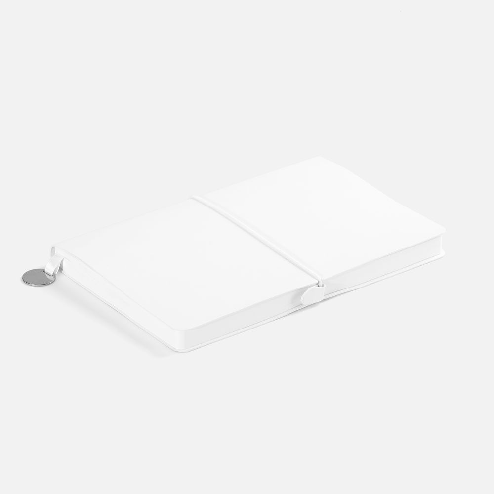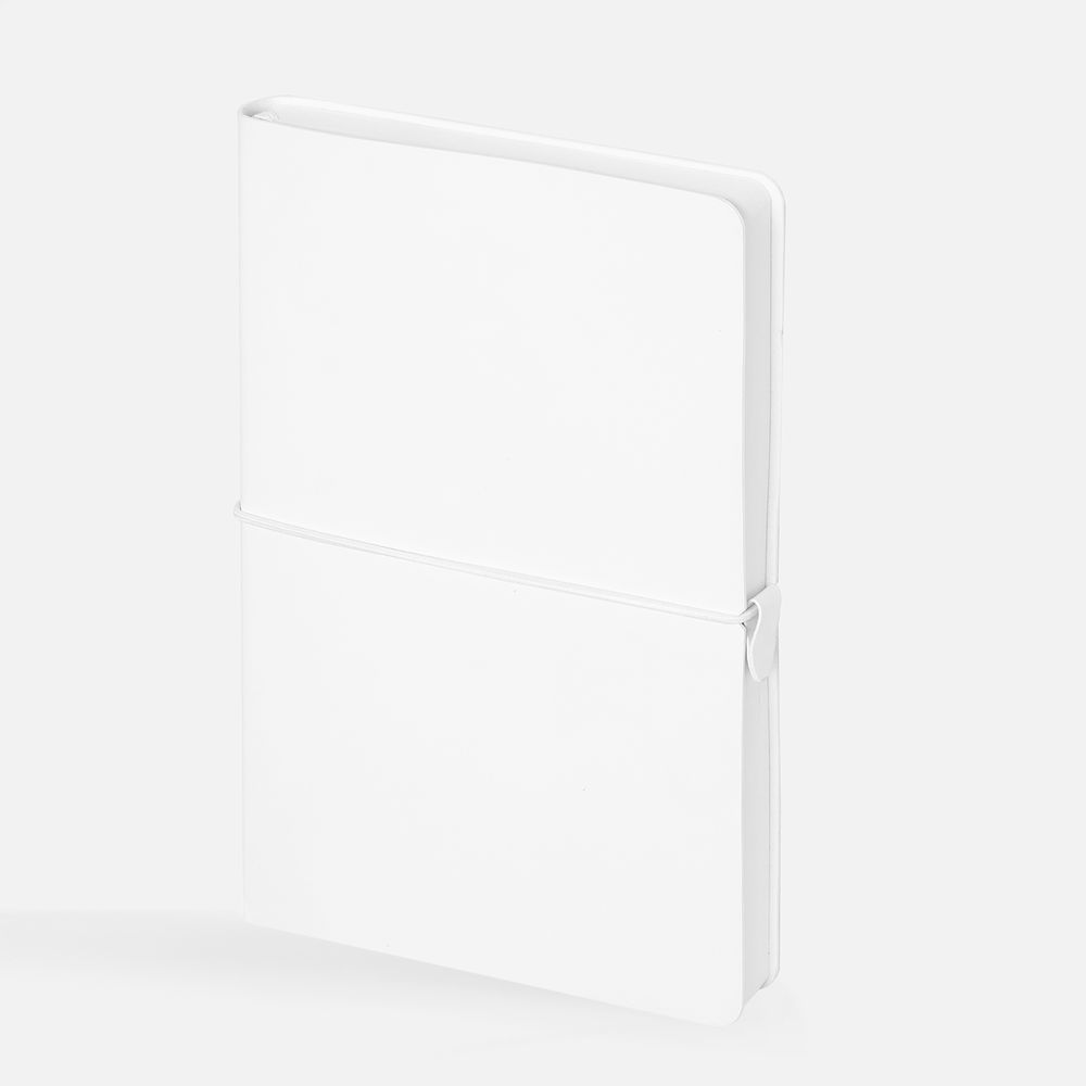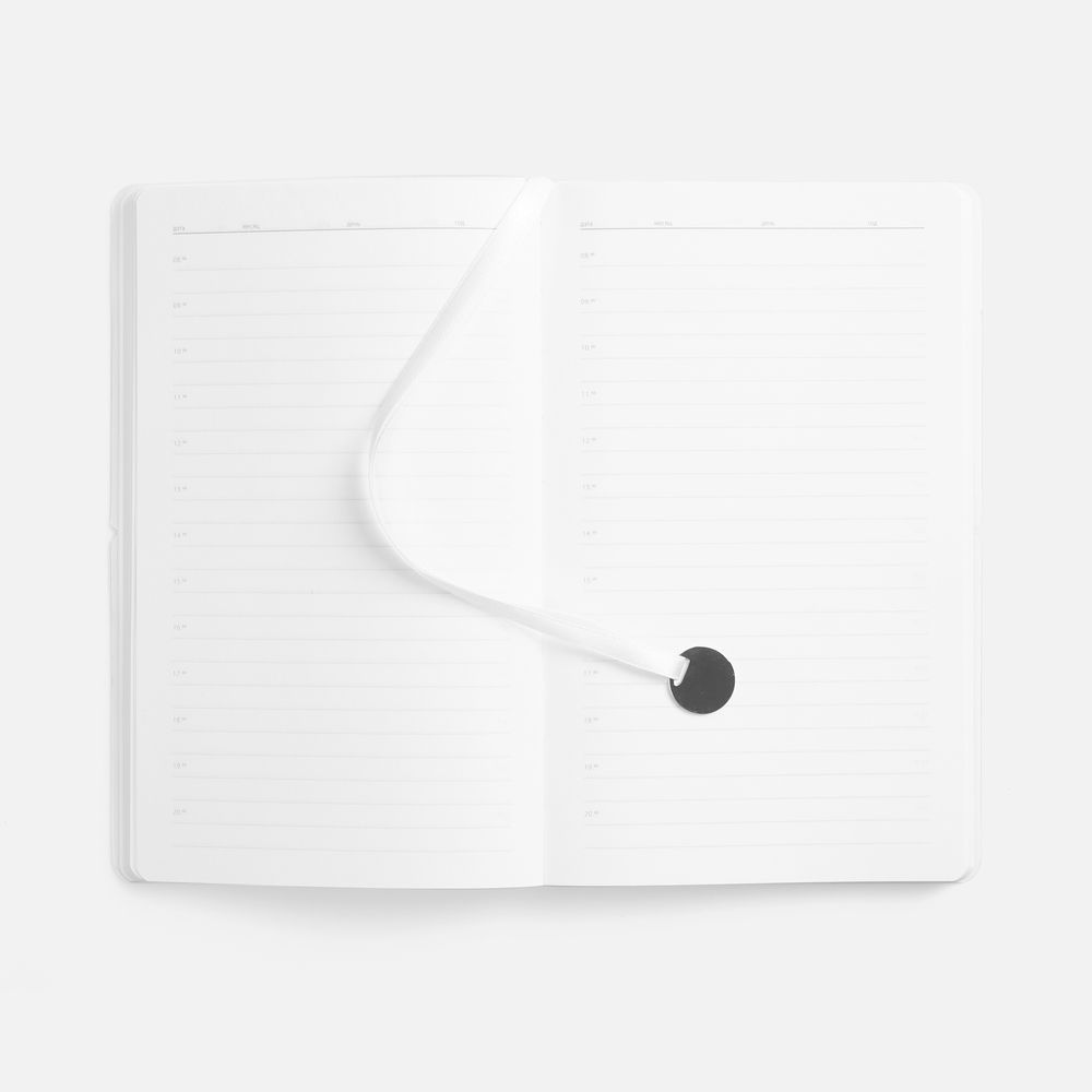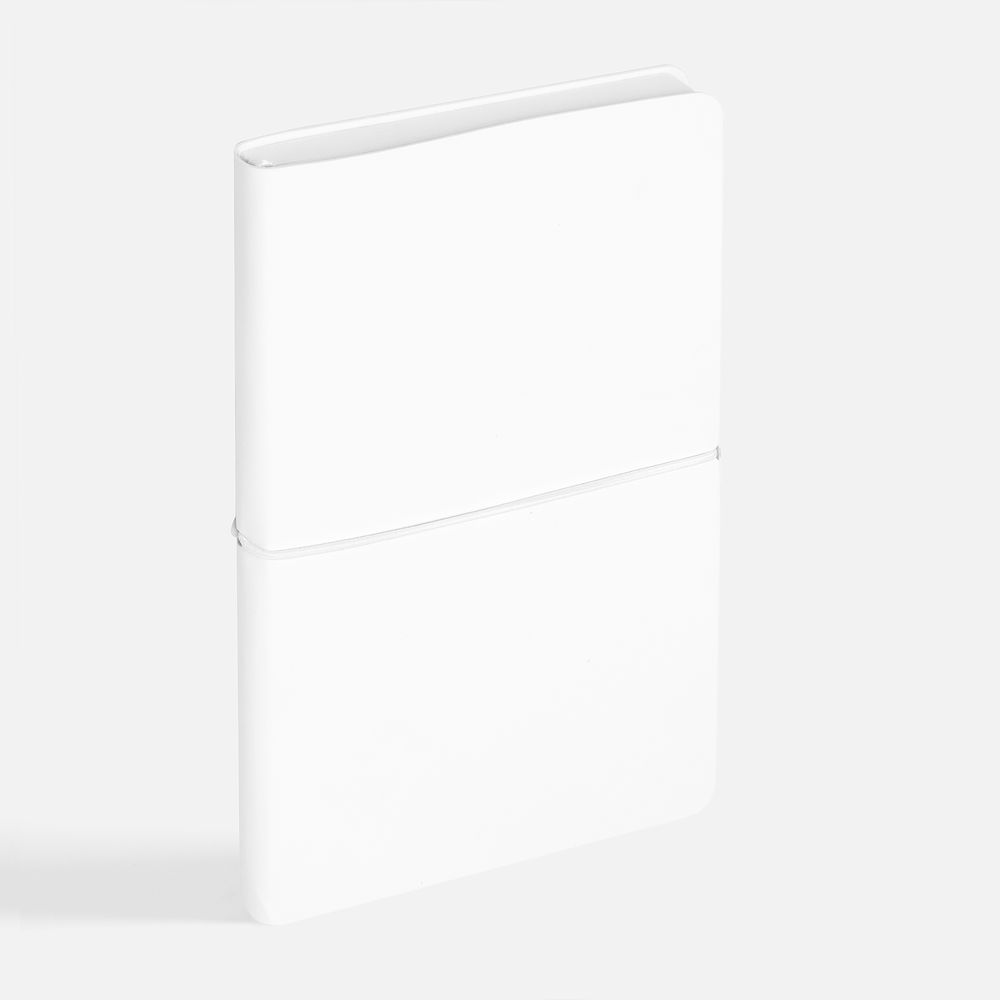 Ежедневник с гибкой обложкой, выполнен из материала Waltz, белый BB, дополнен ляссе в цвет обложки с металлическим шильдом.
