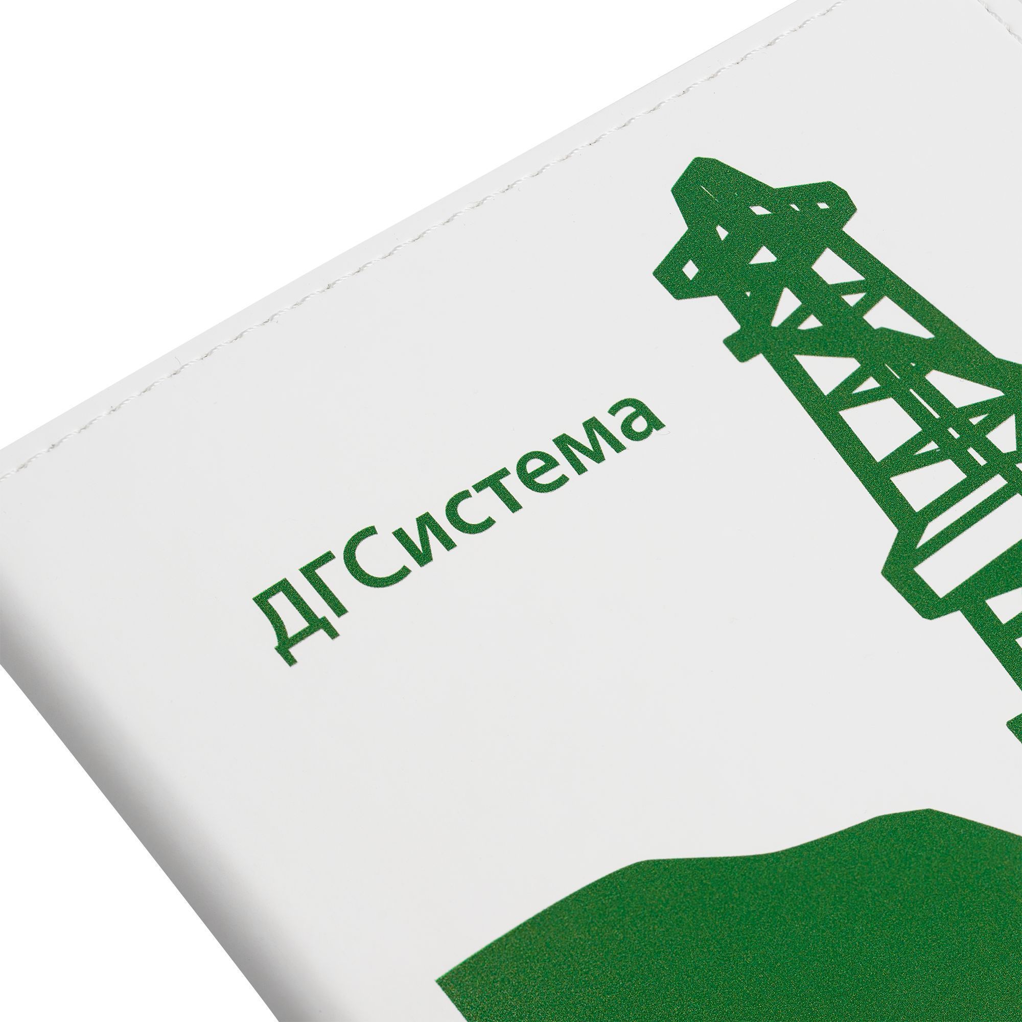 Гибкая обложка, материал обложки — Soft Touch, белый BB и Latte, зеленый FF; материал петли для ручки — Nice Touch, зеленый FF. Срез обложки окрашен в зеленый цвет.