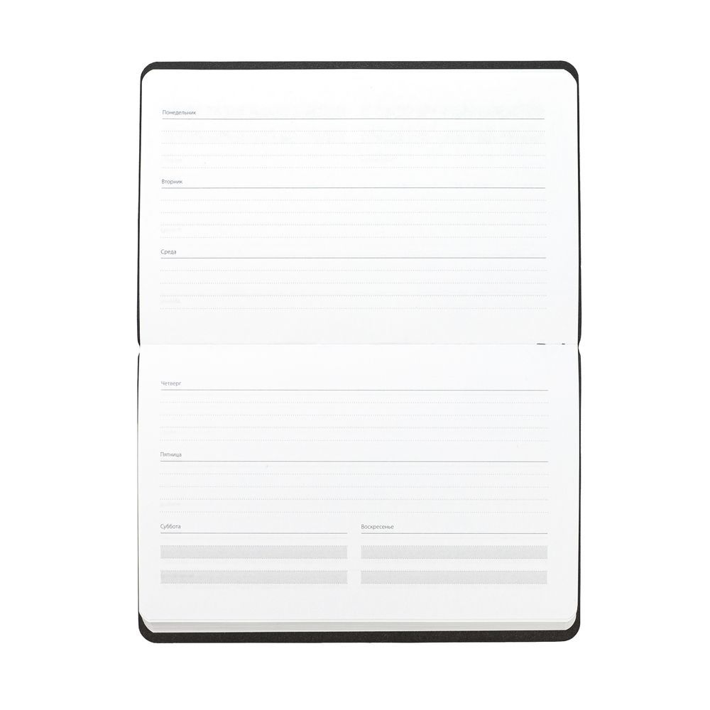Еженедельник с гибкой обложкой, выполнен из материала Latte, cерый.