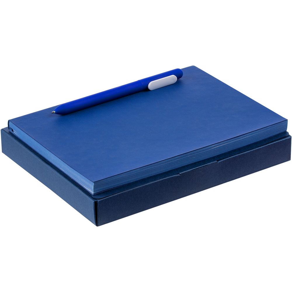 Компактный набор со стильным ежедневником в гибкой обложке с покрытием софт-тач и подходящей ручкой. Все составляющие сложены в самосборную коробку, которая придает набору законченность.