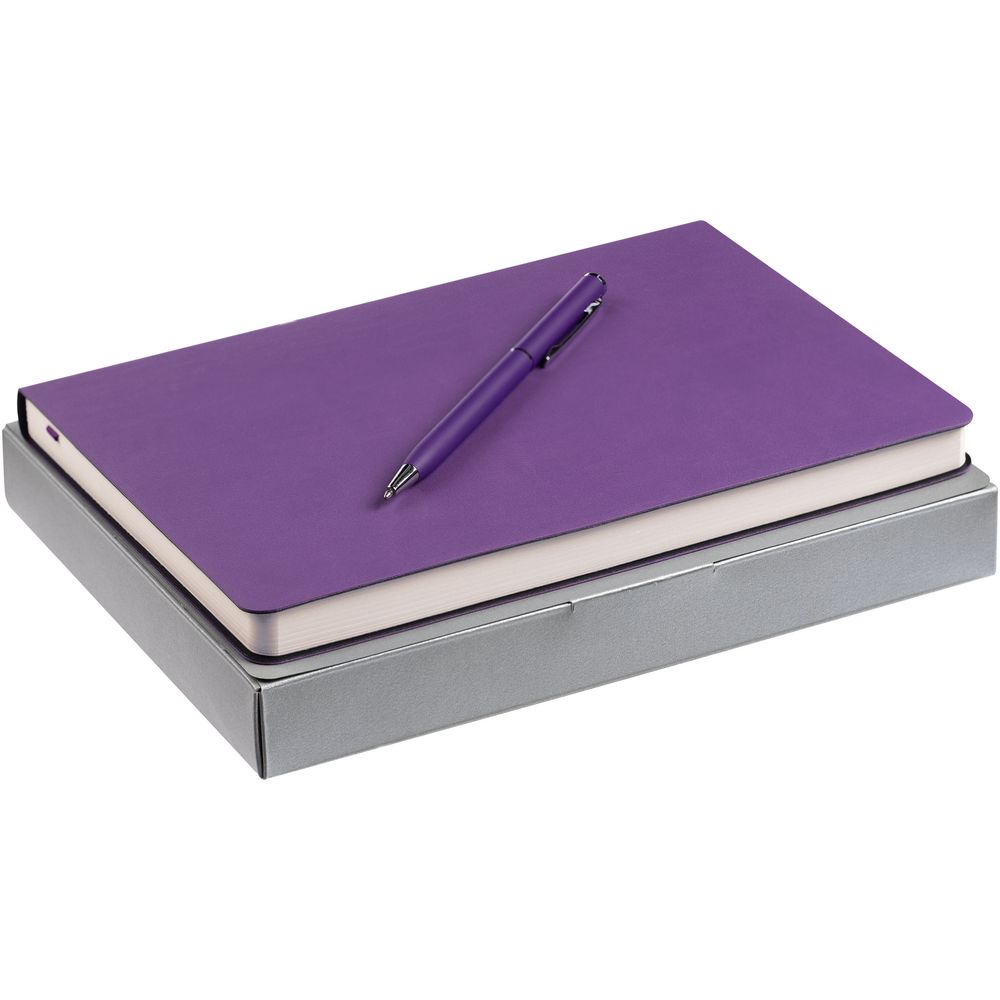Недатированный ежедневник с гибкой обложкой из материала Latte с ляссе в цвет обложки, а также ручка в тон — в подарочной коробке из дизайнерского картона.