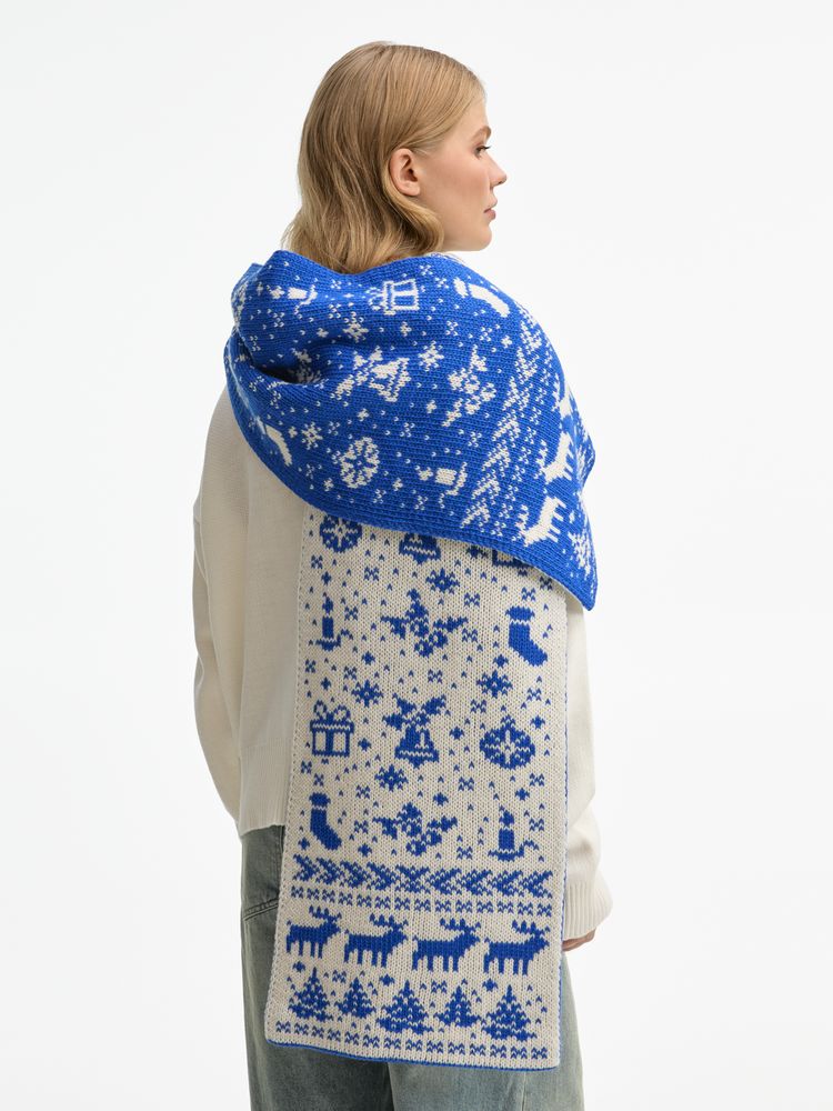 Шарф Holidale выполнен из высокообъемной полушерстяной пряжи, которая дарит тепло и ощущение праздничного уюта. Изысканный жаккардовый узор в традиционных зимних цветах, контрастные сочетания и объемная текстура подчеркивают праздничный характер аксессуара.